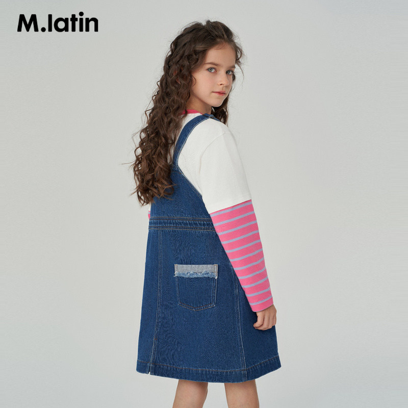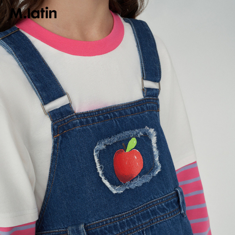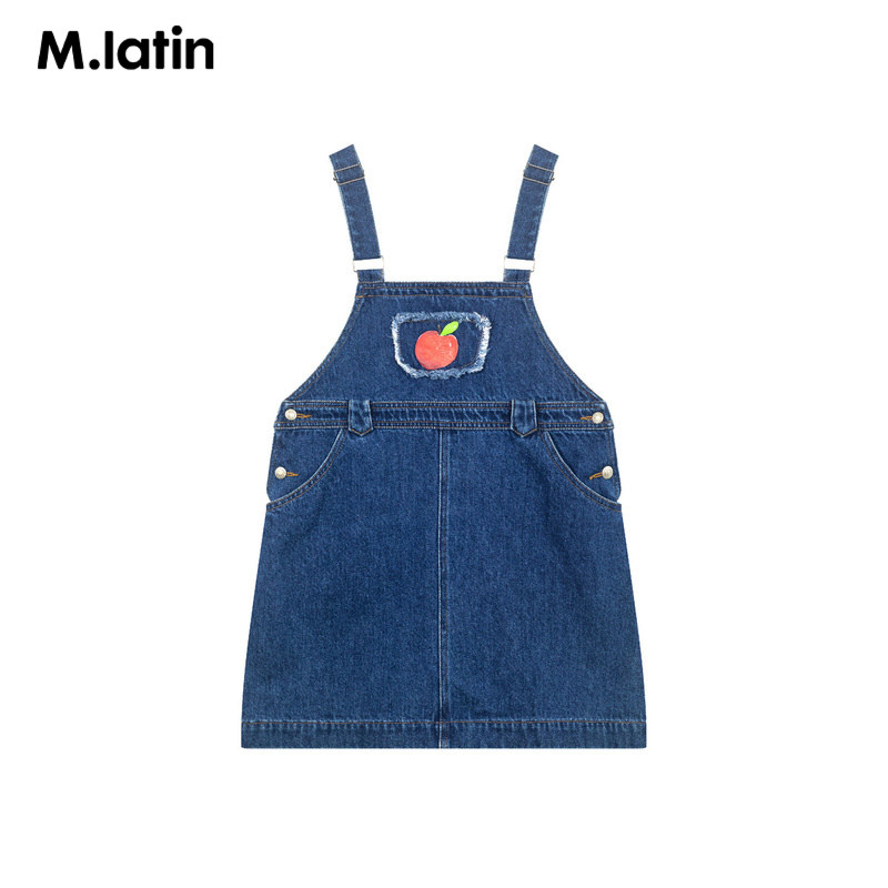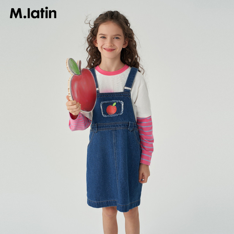 马拉丁童装儿童裙子秋季女大童苹果印花水洗复古牛仔背带裙