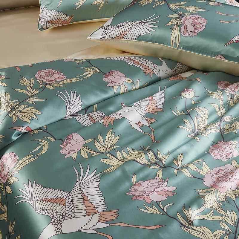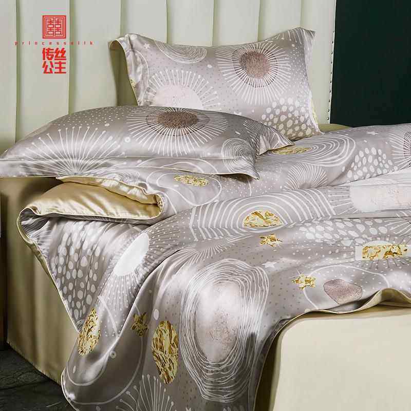 嘉丝丽真丝四件套简约大气100桑蚕丝床上用品公主风被套床单