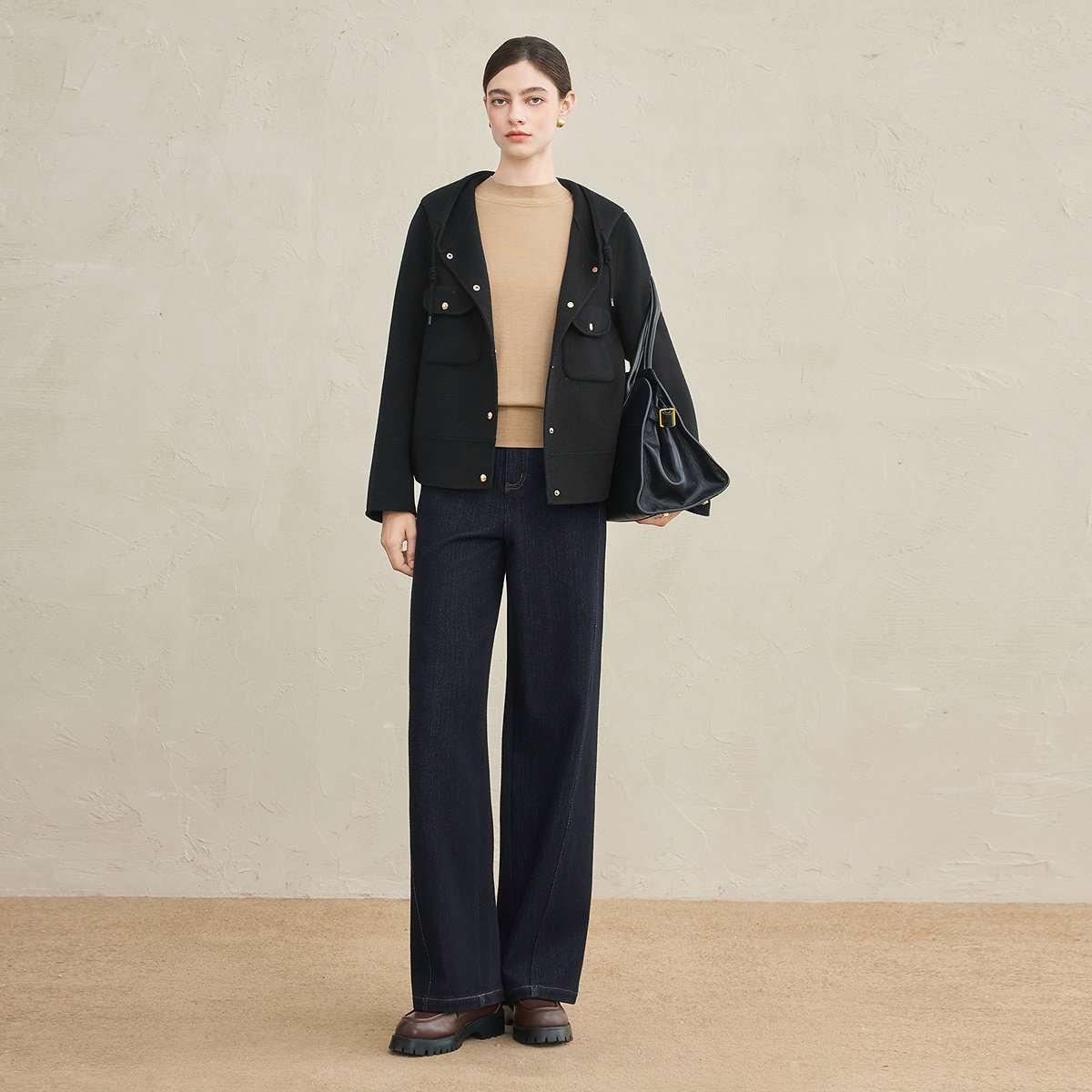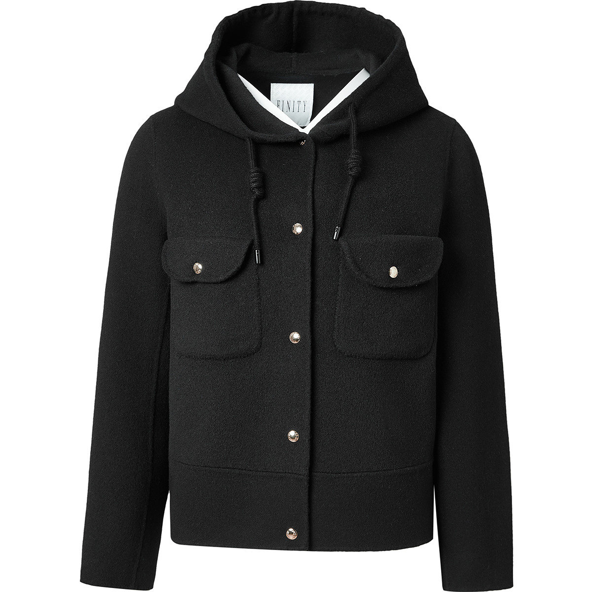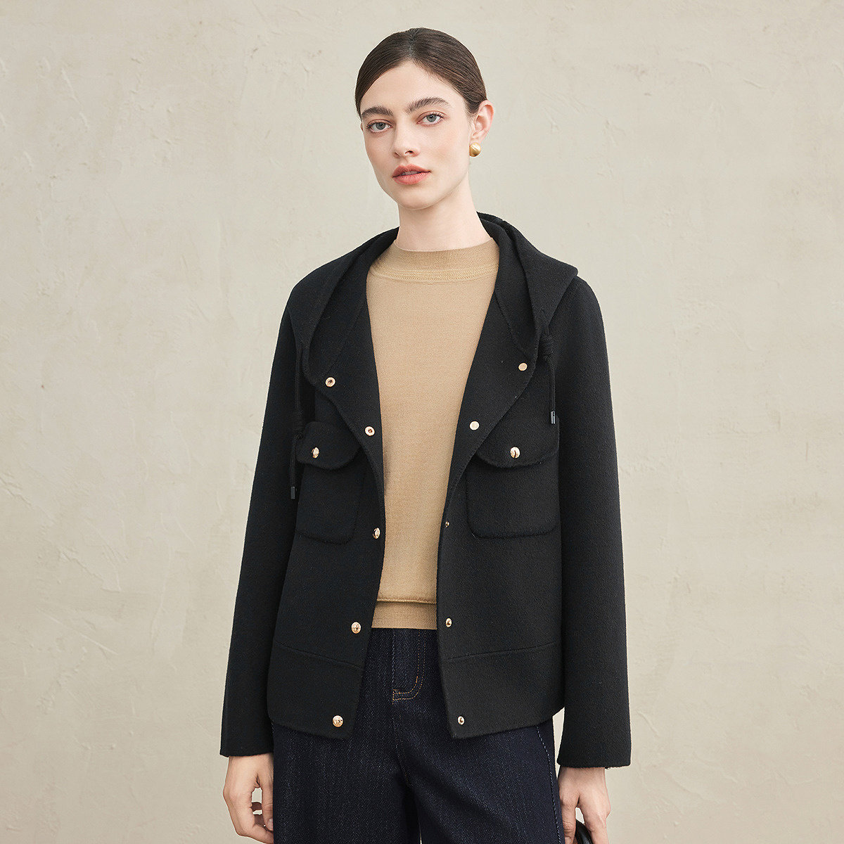 FINITY菲妮迪毛呢外套2025年冬季新款简约双面呢连帽羊绒大衣女士