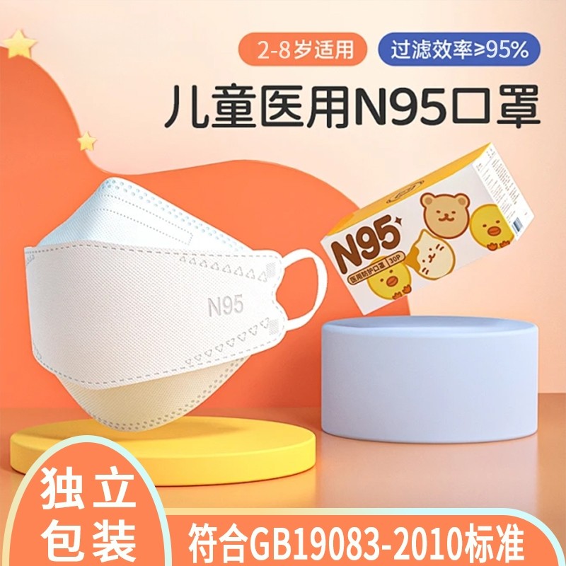 儿童2-8岁一次性N95级医用防护口罩3D型熔喷布防流感柳叶船型上学