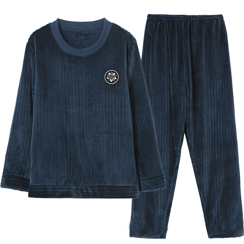 男士睡衣秋冬季三层加厚加绒珊瑚绒夹棉保暖中老年爸爸家居服套装