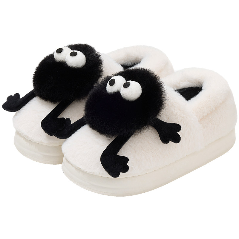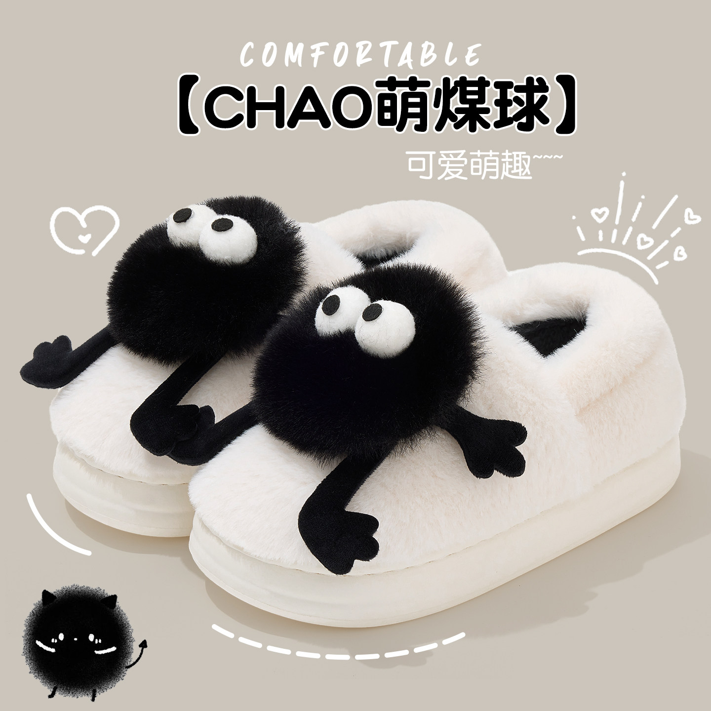 可爱煤球棉拖鞋女2025新款冬季室内家居包跟厚底毛绒女款居家棉鞋