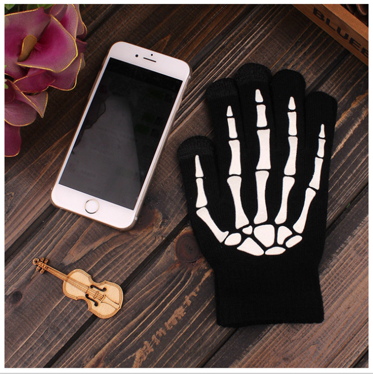 新款黑色鬼爪触屏手套男女针织个性潮款秋冬季韩版保暖触摸屏手套