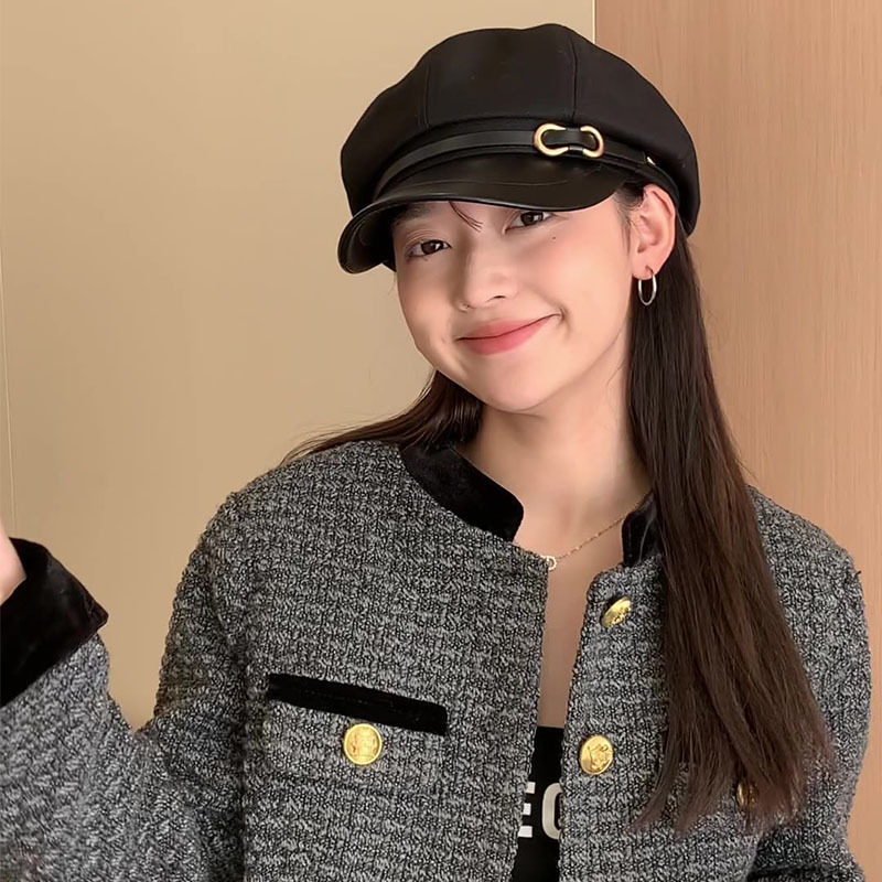 韩系2025新款八角贝雷帽女春秋显脸小报童帽复古皮质鸭舌画家帽子