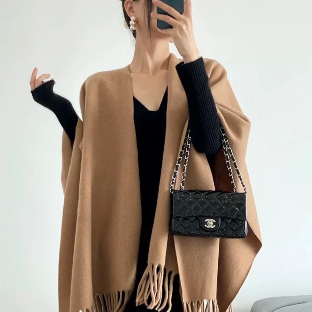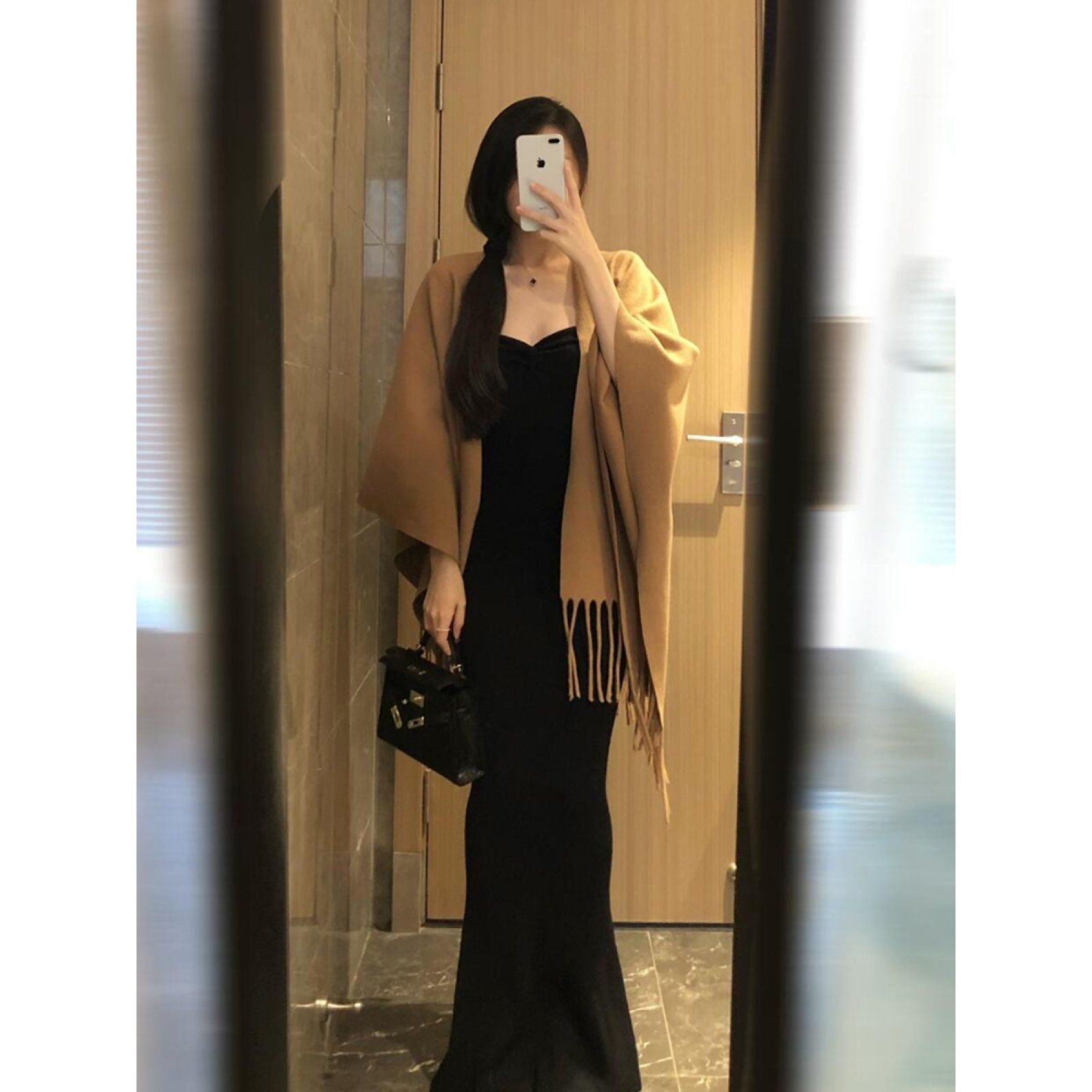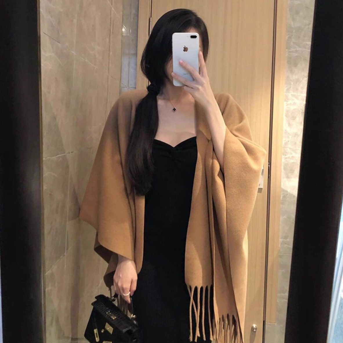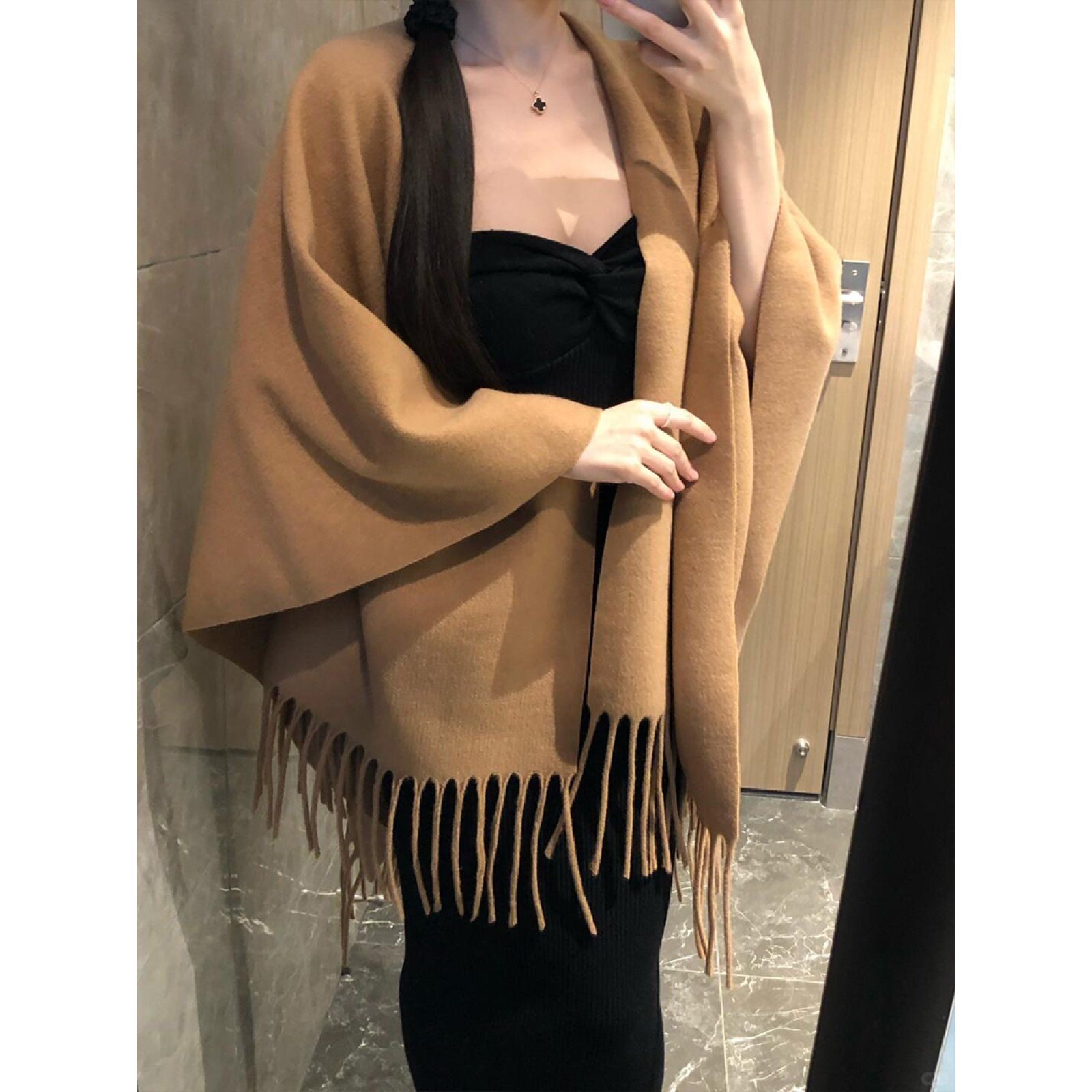 美拉德系纯色披肩女外搭韩版百搭秋冬季仿羊绒保暖围巾斗篷厚披风