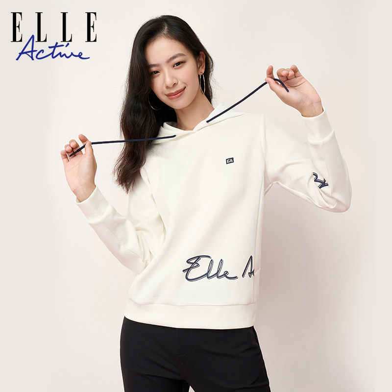 ELLE Active2026春秋季内搭字母连帽卫衣女高街正肩纯色帽衫上衣