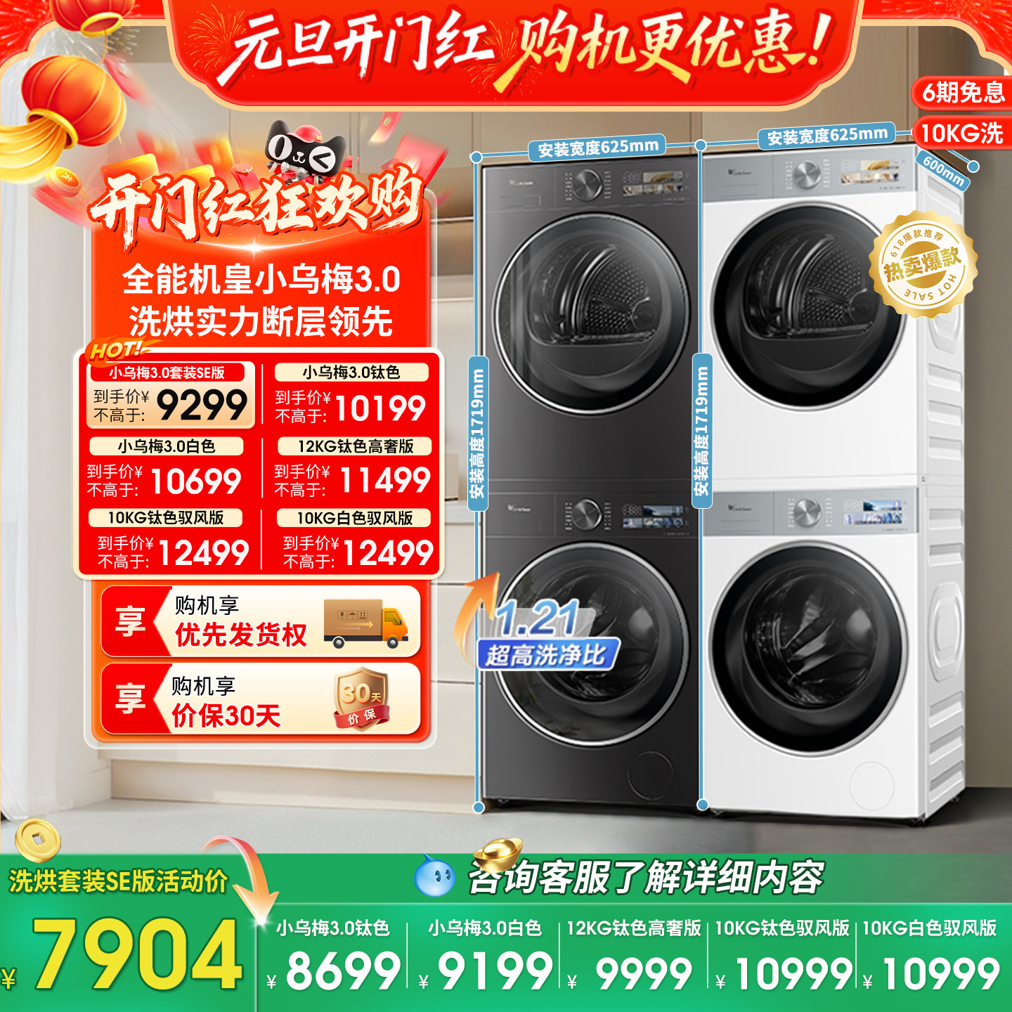 [纯平全嵌]小天鹅小乌梅3.0洗烘套装10KG洗衣机热泵变频烘干机E40