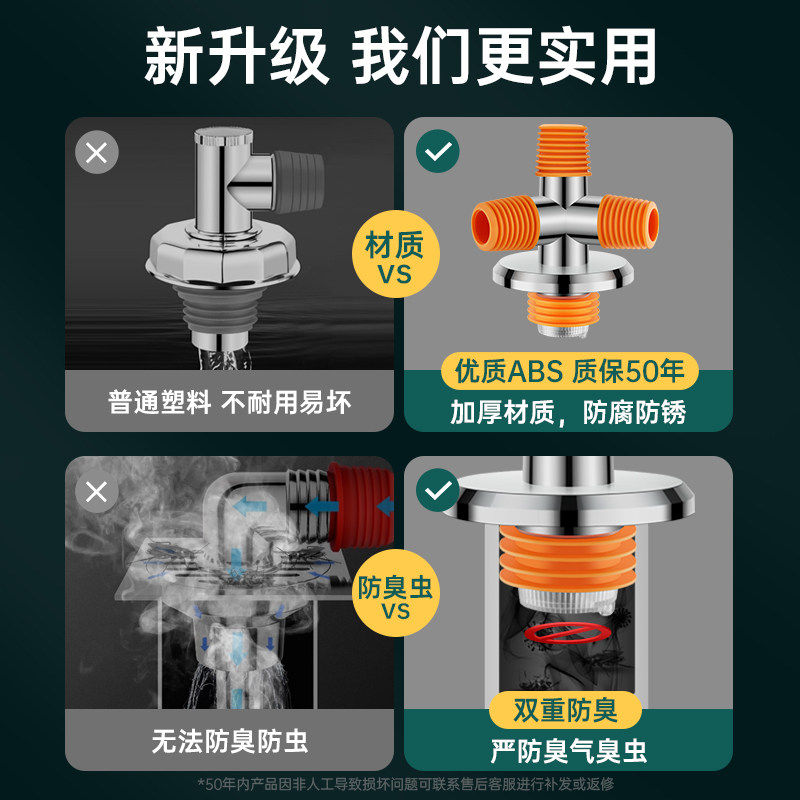 洗衣机地漏专用接头排水管下水管道三头通四头通五两用防臭多功能