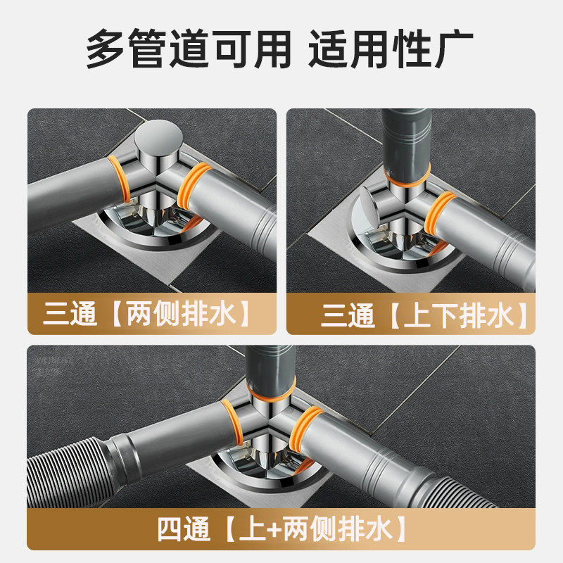 洗衣机地漏专用接头下水排水管道防反溢水二合一三通方形地漏盖子