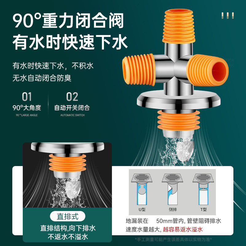 洗衣机下水止逆阀防反水下水管三头通地漏二合一排水管防溢水接头