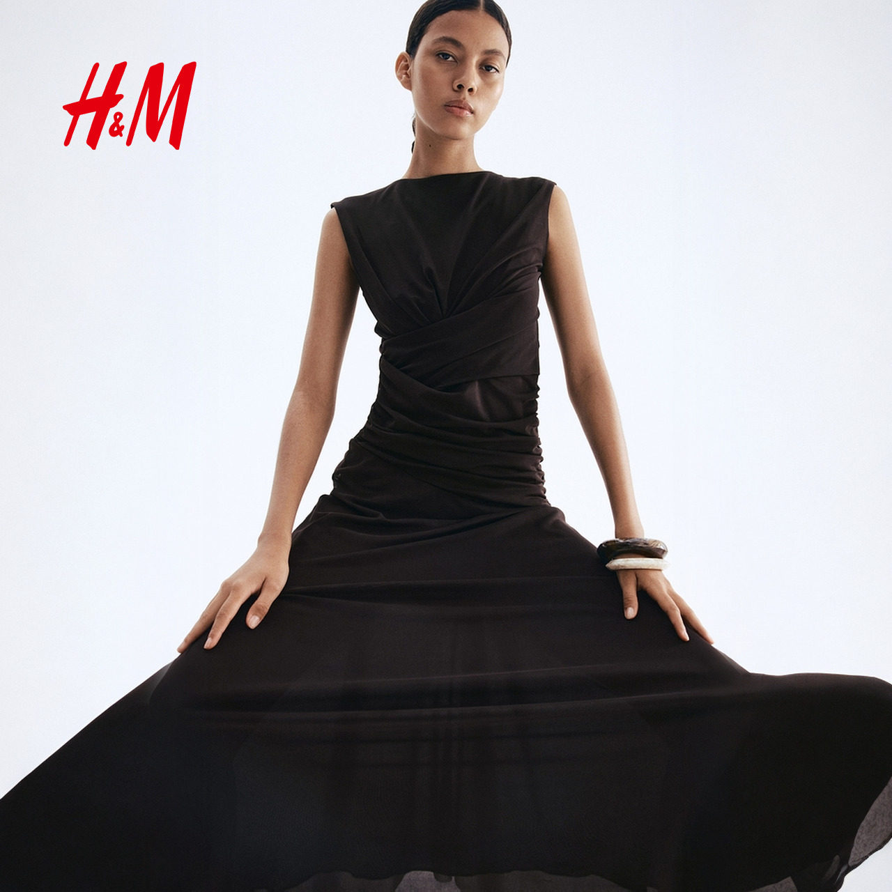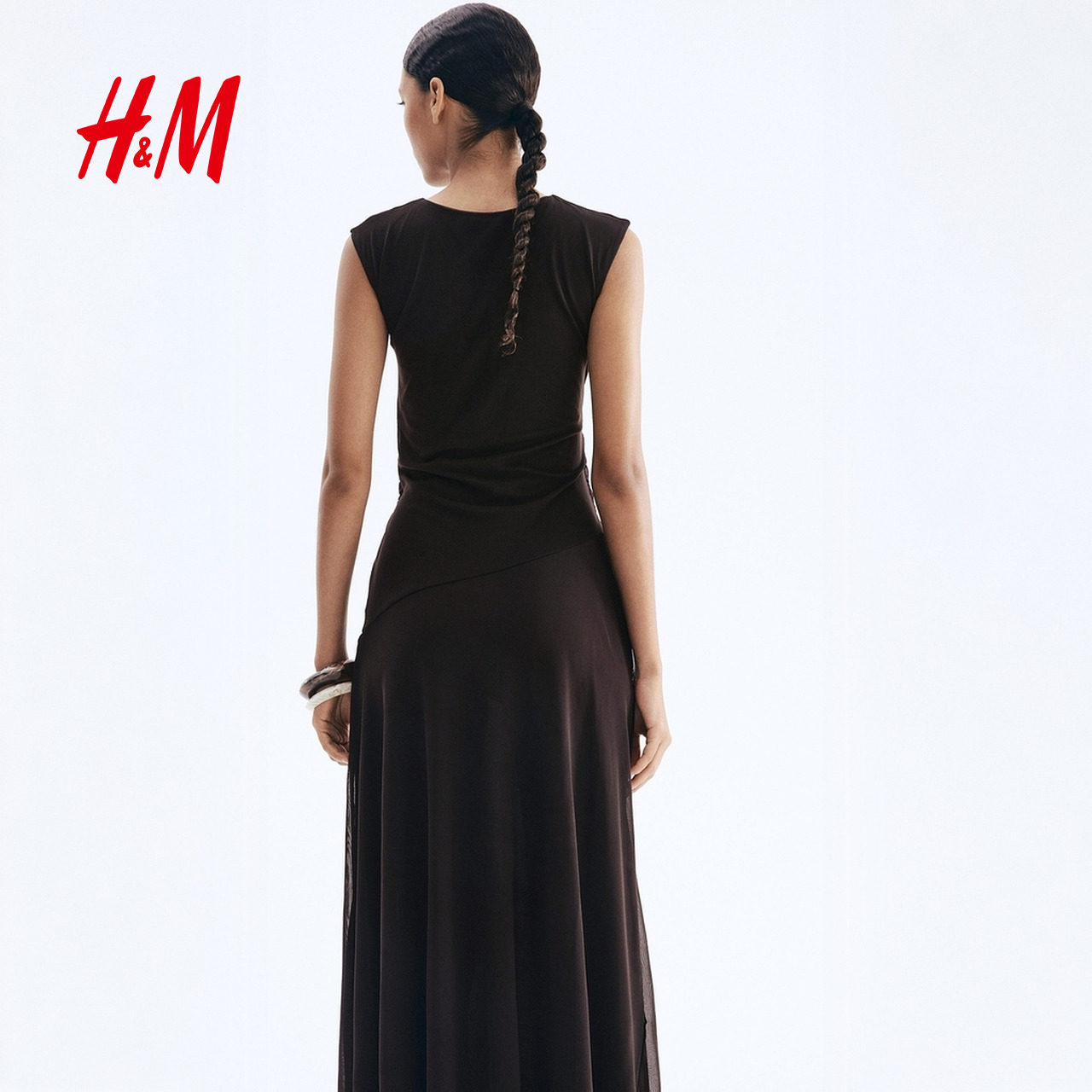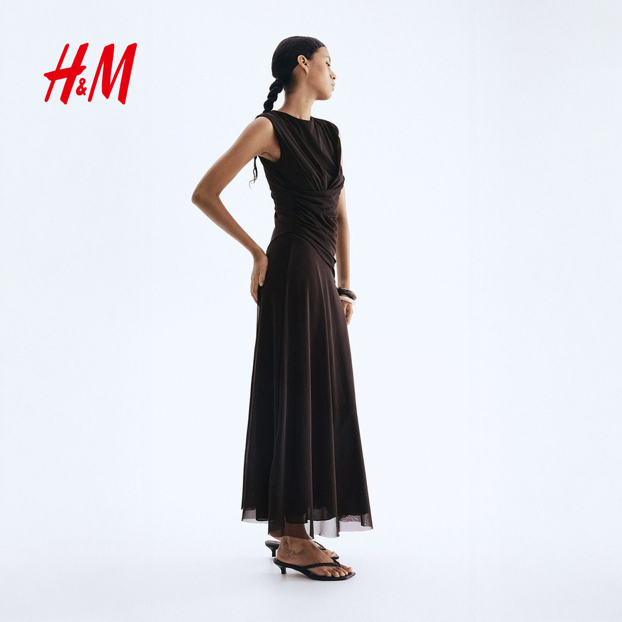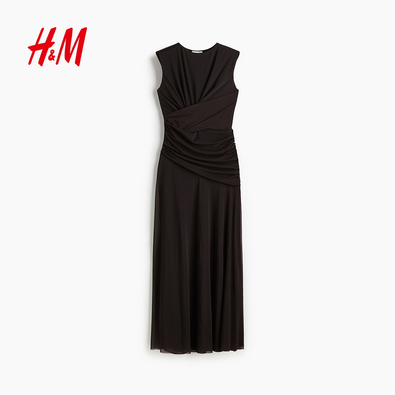 HM女装连衣裙2025年冬季新款垂褶网纱连衣裙1265325