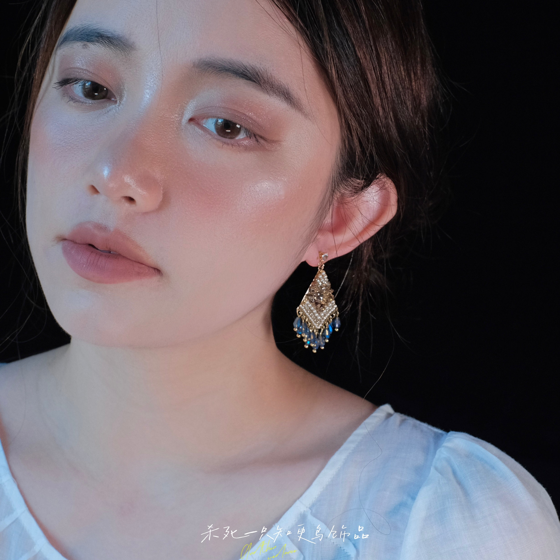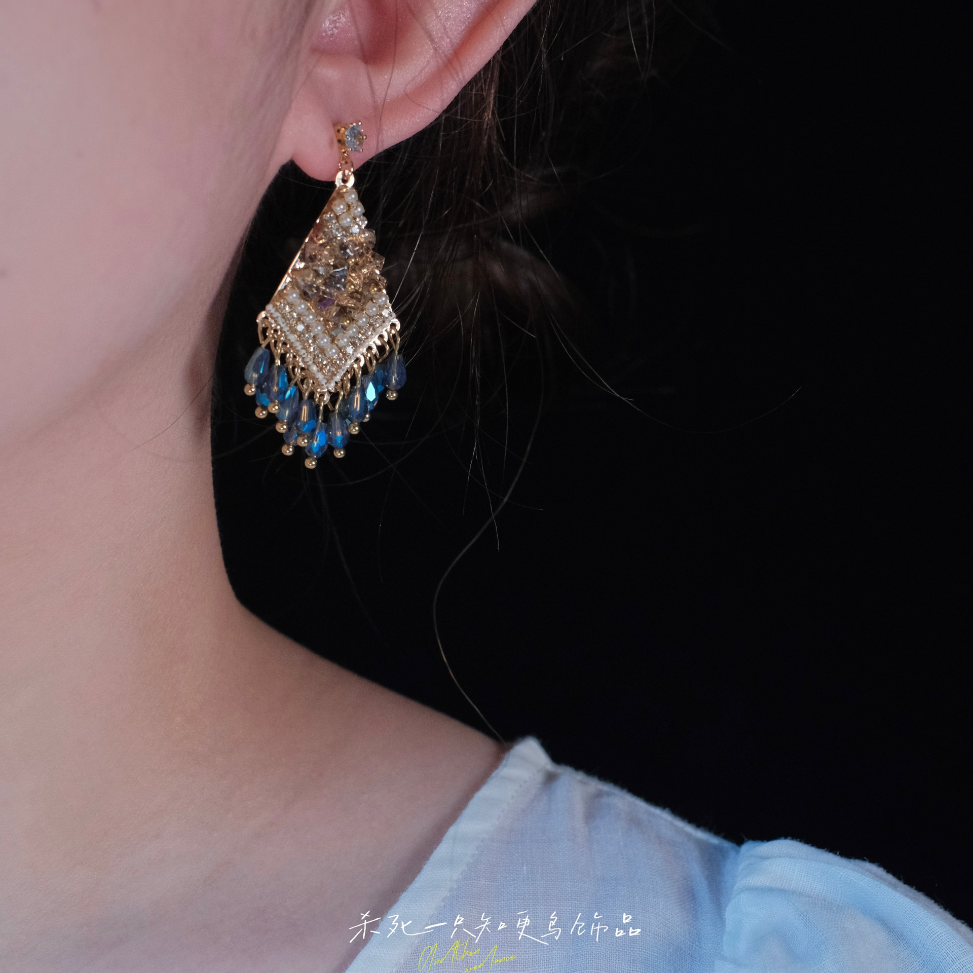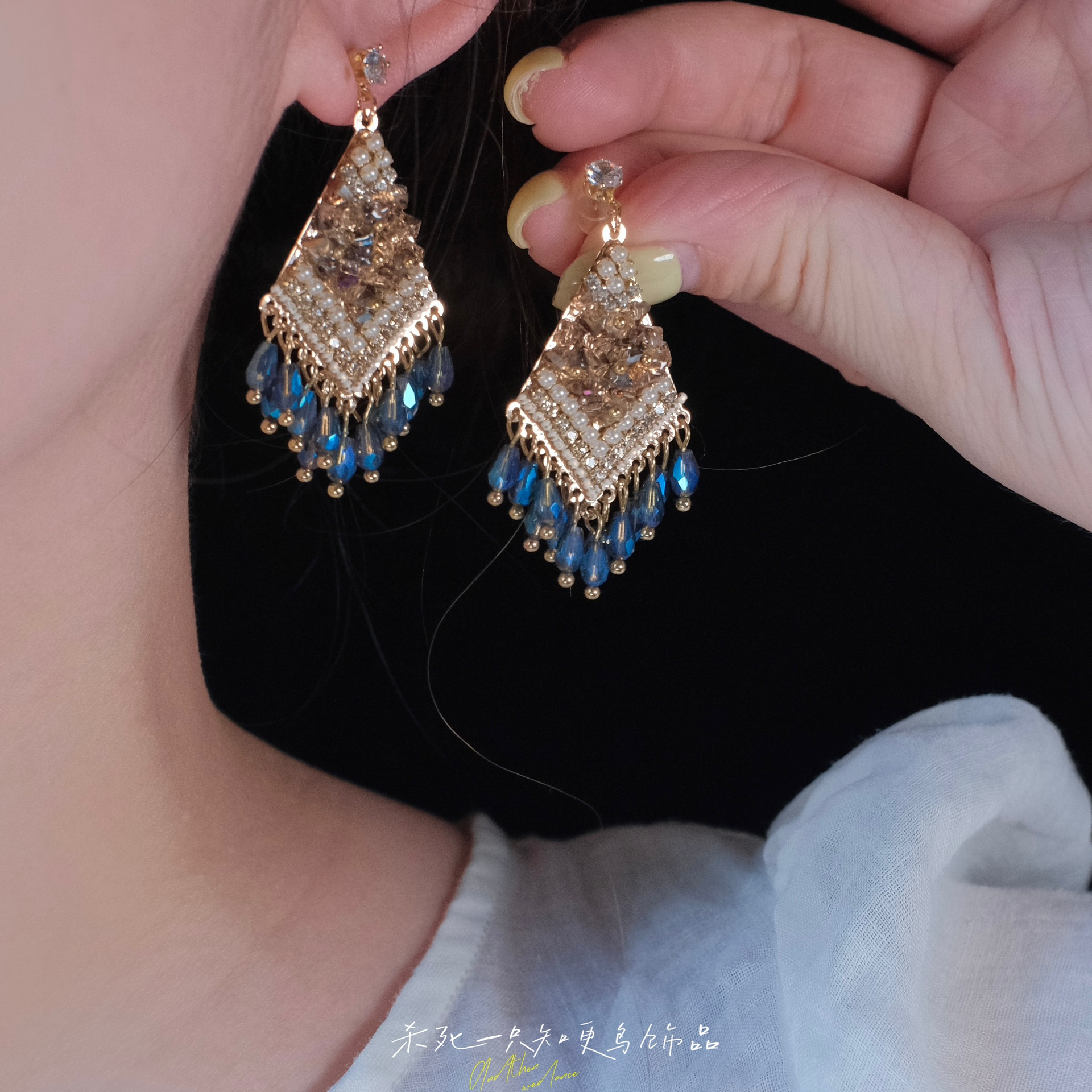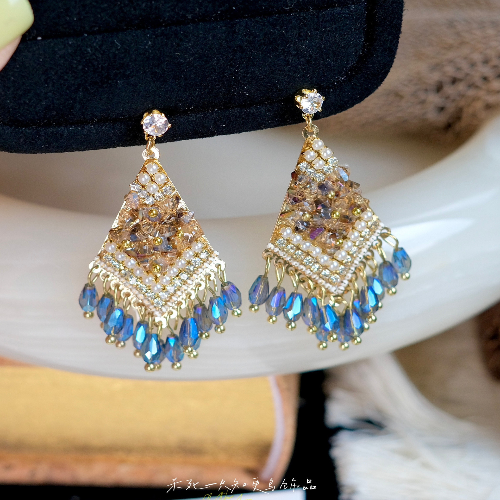《苗疆少女》波西米亚复古民族风水晶流苏夸张度假耳环耳夹耳饰女