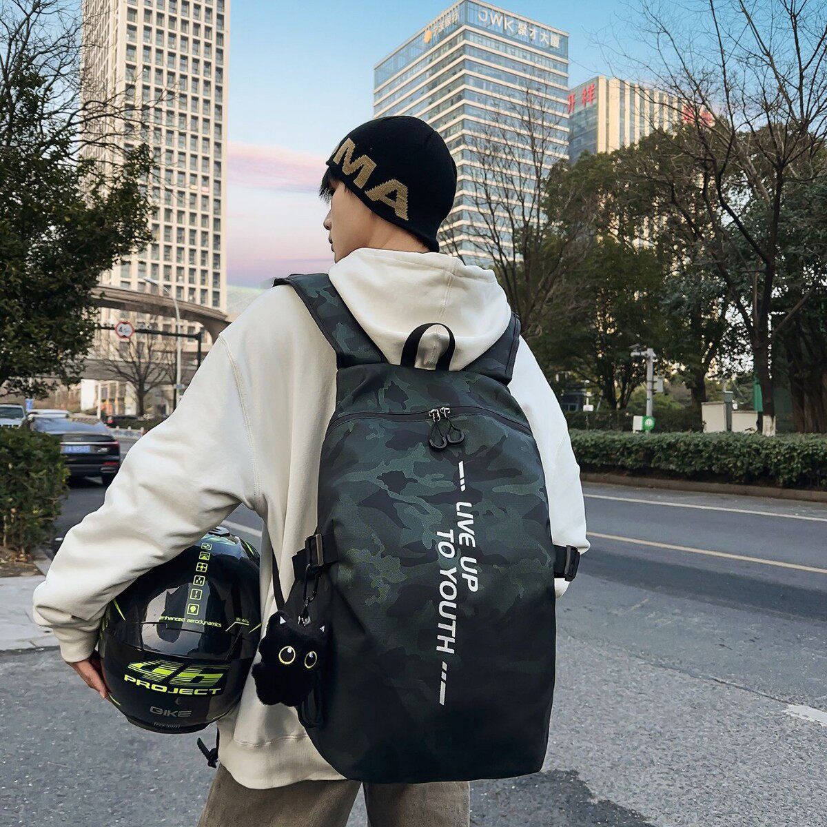 CHAOFANJI 设计感小众潮牌休闲书包女大学生双肩包男生高中生背包