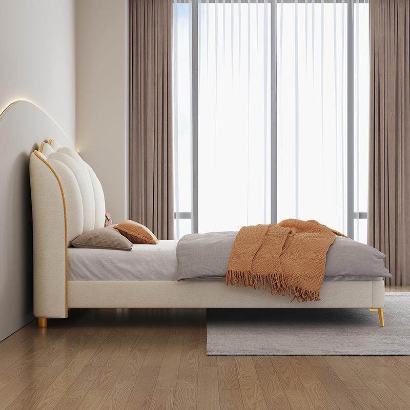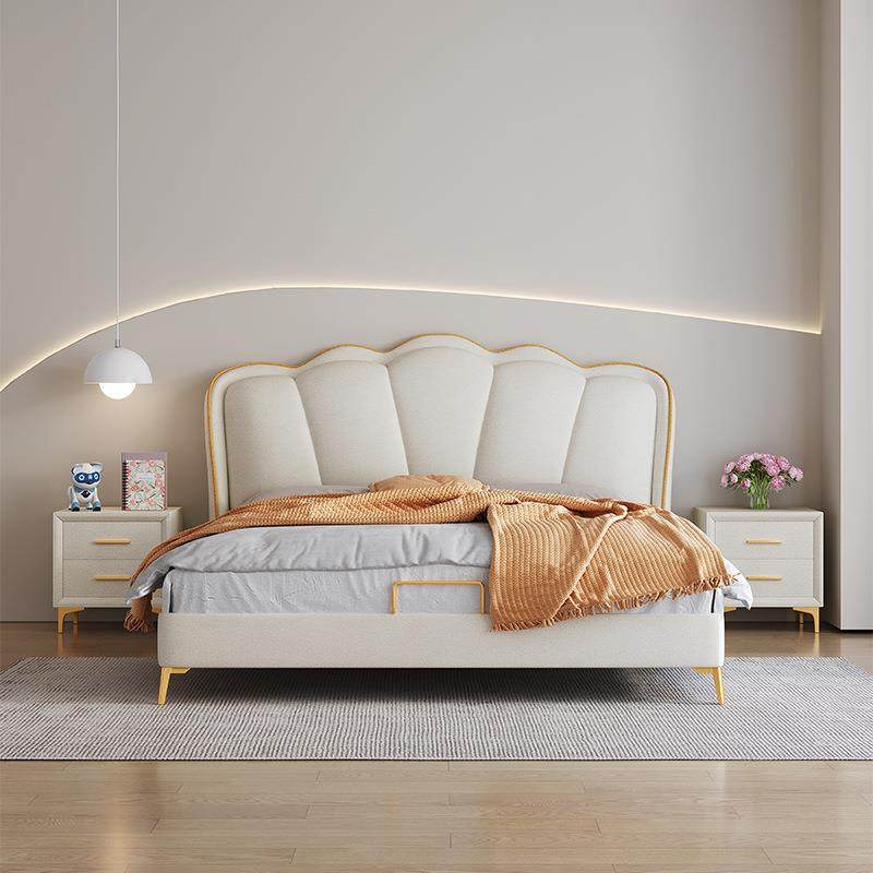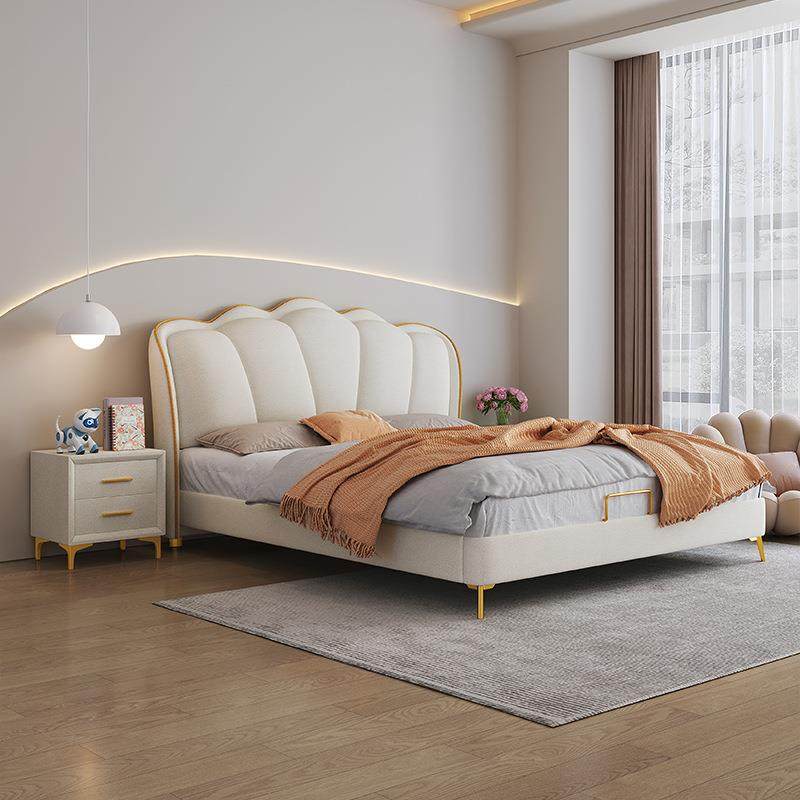 奶油风法式花瓣床现代简约主卧软包婚床轻奢家用储物双人床皮艺床