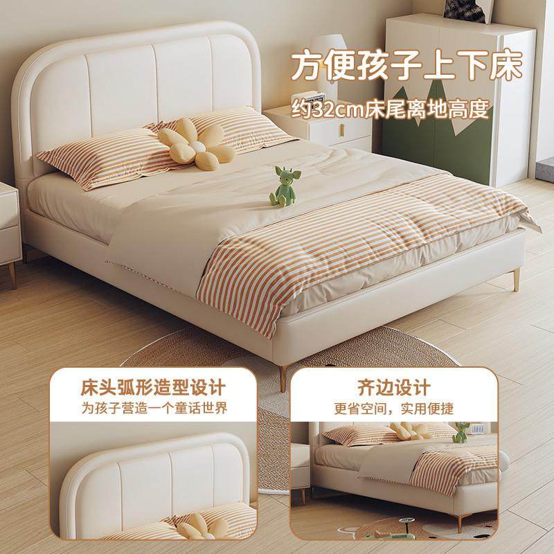 耐脏奶油风儿童床现代简约男孩男生单人床轻奢皮艺1.2m女孩公主床