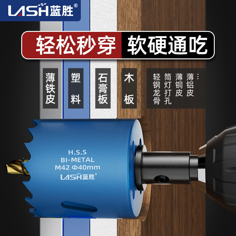蓝胜木工开孔器钻头打孔金属75专用钻孔神器木板扩孔木头电钻筒灯