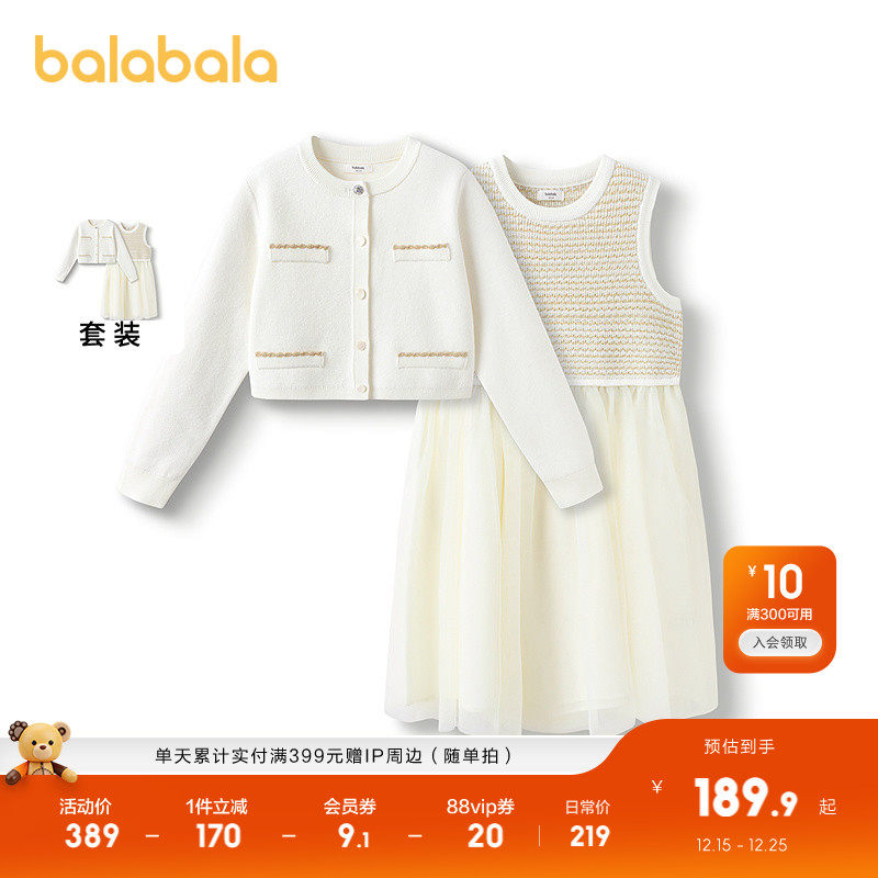 巴拉巴拉童装女童连衣裙儿童裙子2025春装网纱拼接两件套小香风甜