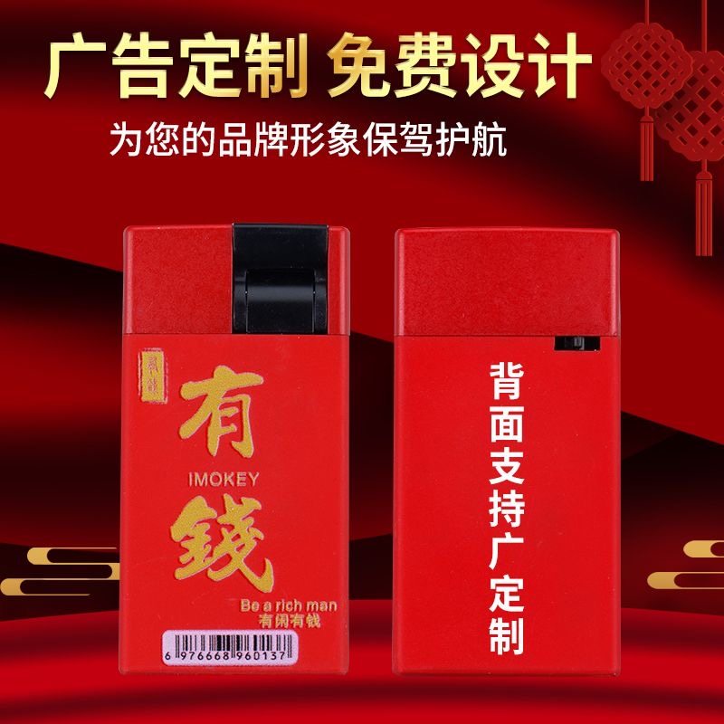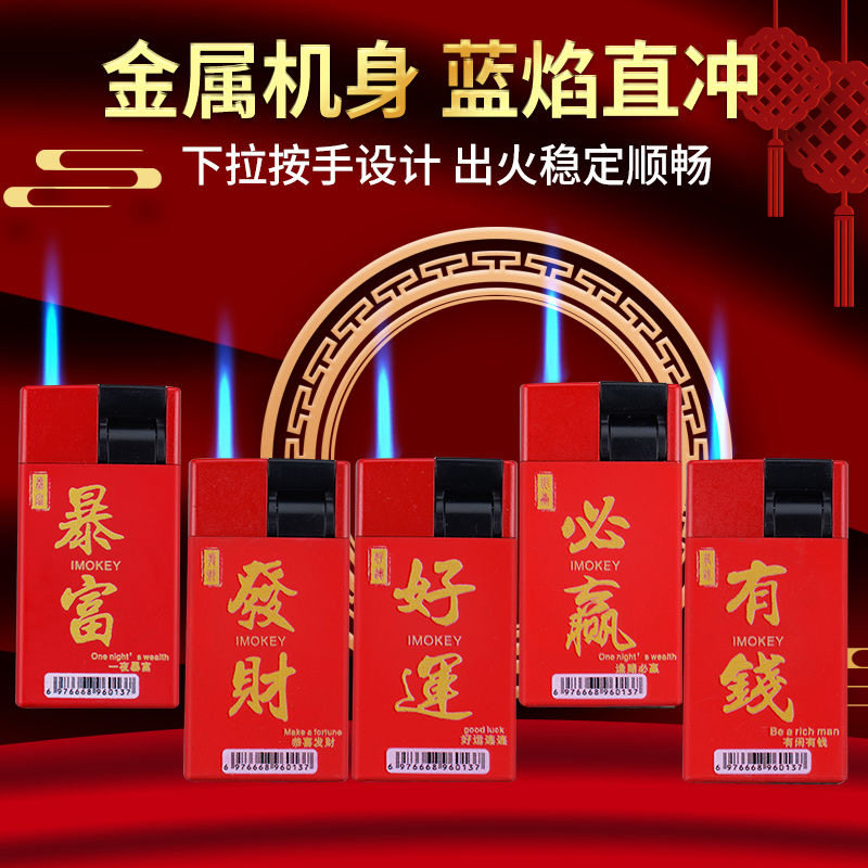高档金属磨砂防风直冲打火机创意下拉可充气火机批发印字家用好运