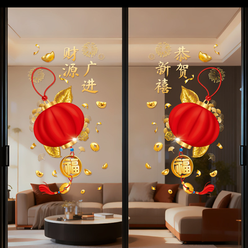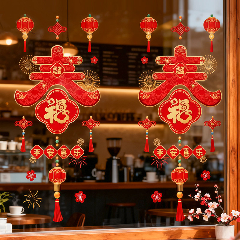 新年窗花静电贴马年2026新款福字贴过年春节装饰玻璃门贴年画窗贴