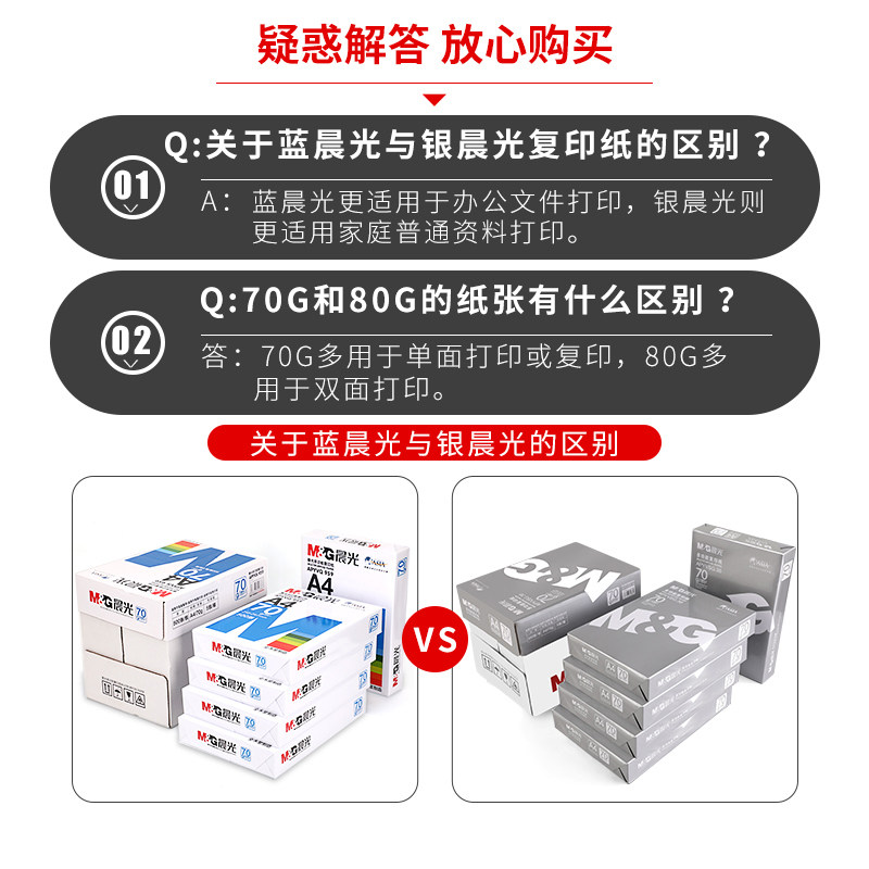 晨光A4打印复印纸 纯木浆a4白纸草稿纸70g 80g一包500张整箱2500张办公用品学生用单包5包装打印用纸批发包邮