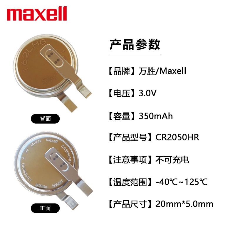 Maxell万胜/麦克赛尔CR2050HR耐高温3V纽扣电池适用内置胎压监测传感器PLC伺服主板CR2050B CR2050W