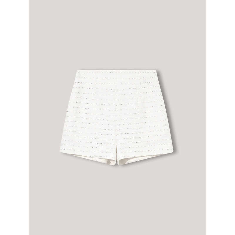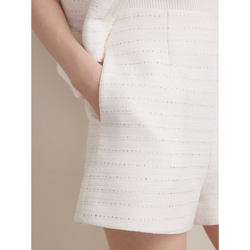 Goodland美地夏季法式优雅金属闪丝纱线肌理香风雪纺短裤