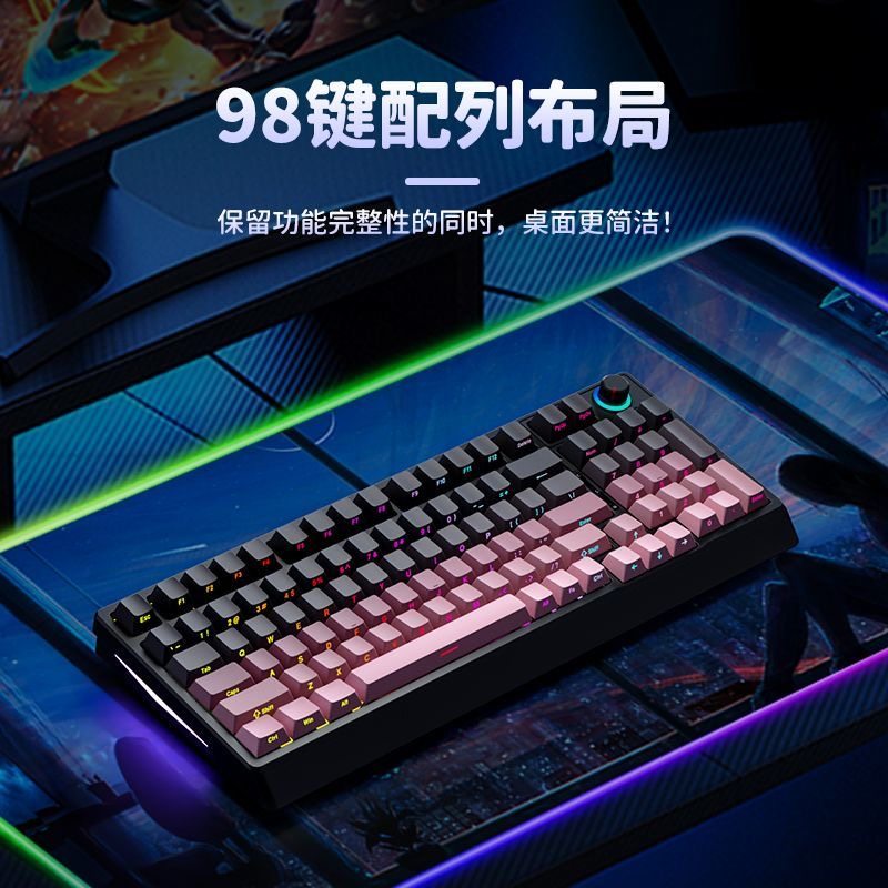 F98游戏电竞电脑音量旋钮办公彩光有线客制化高颜值机械键盘外设