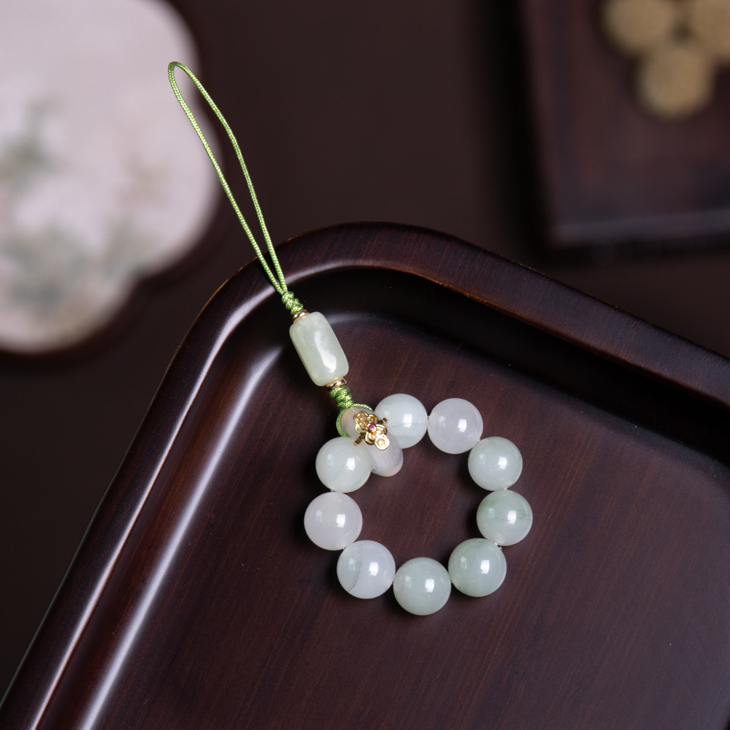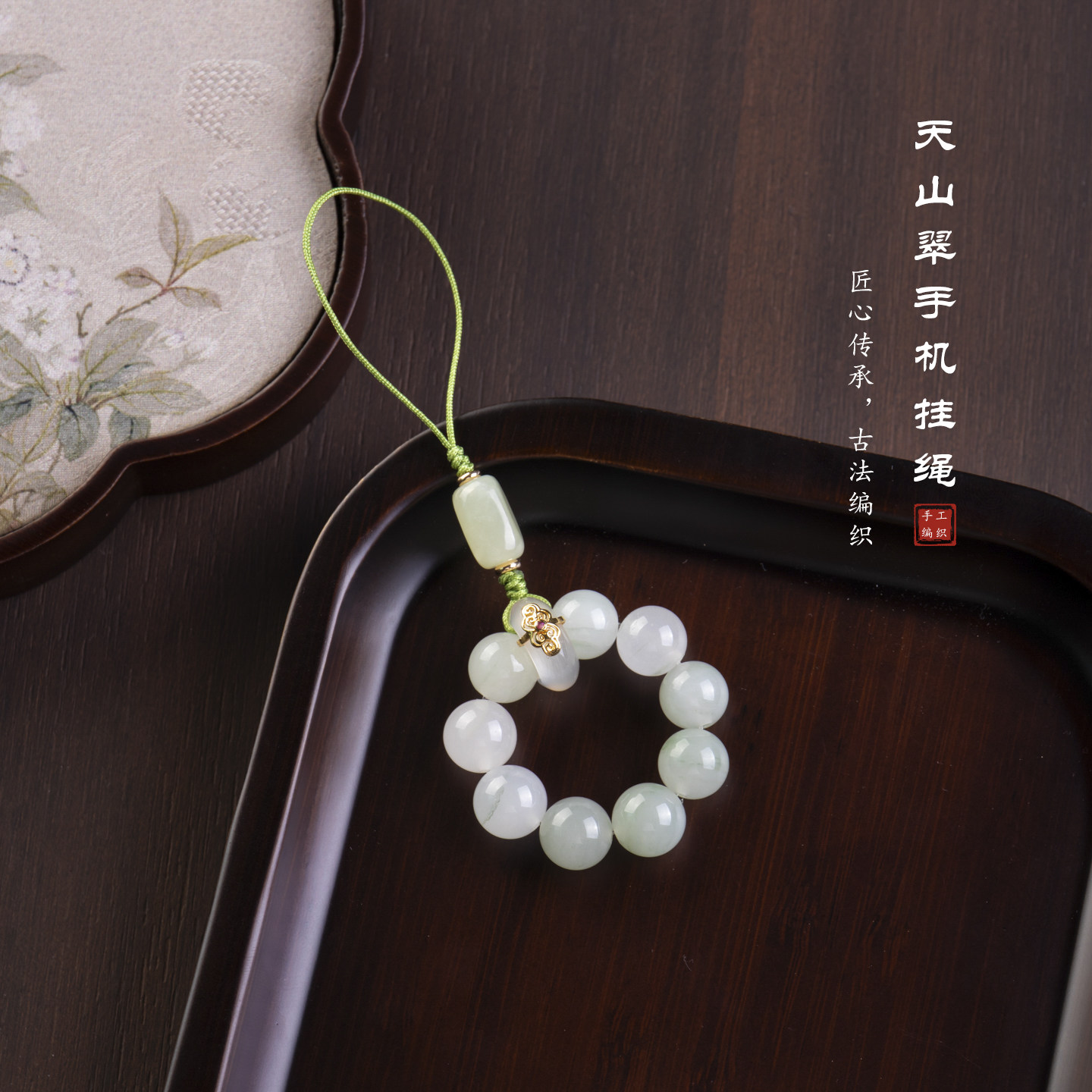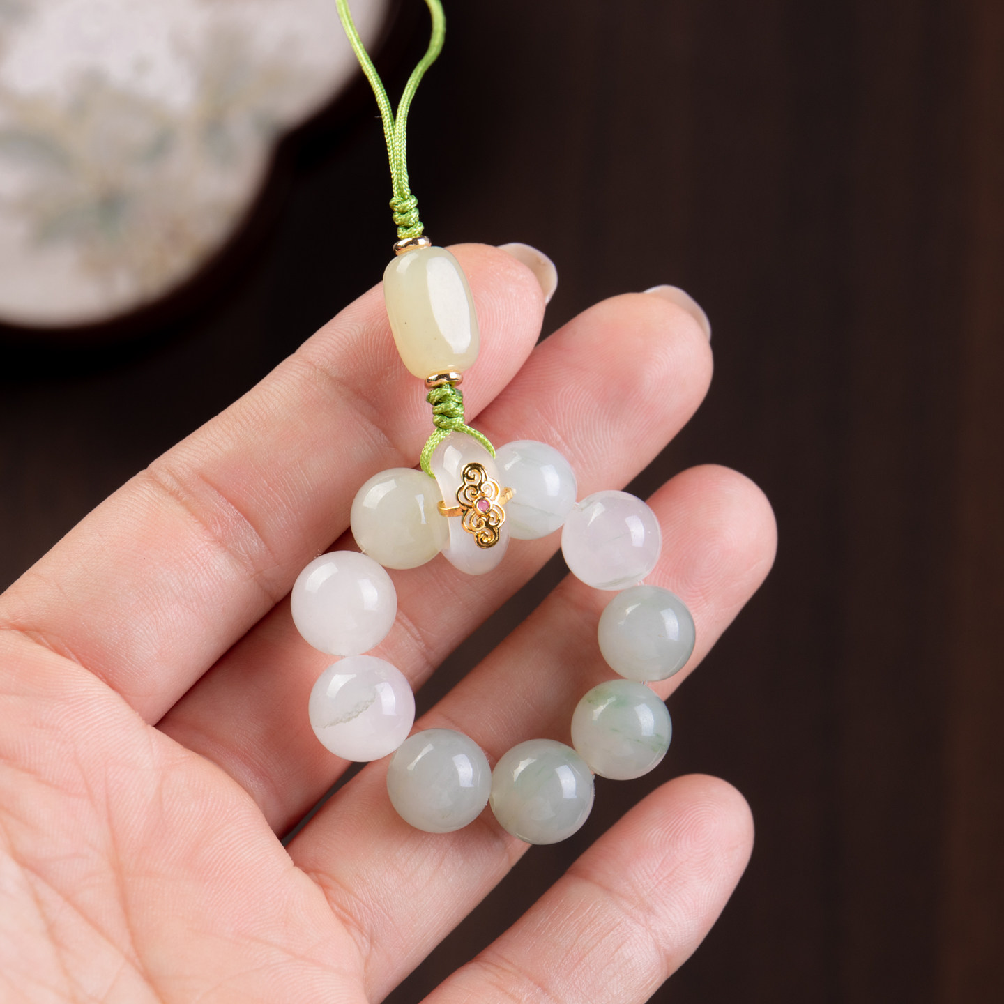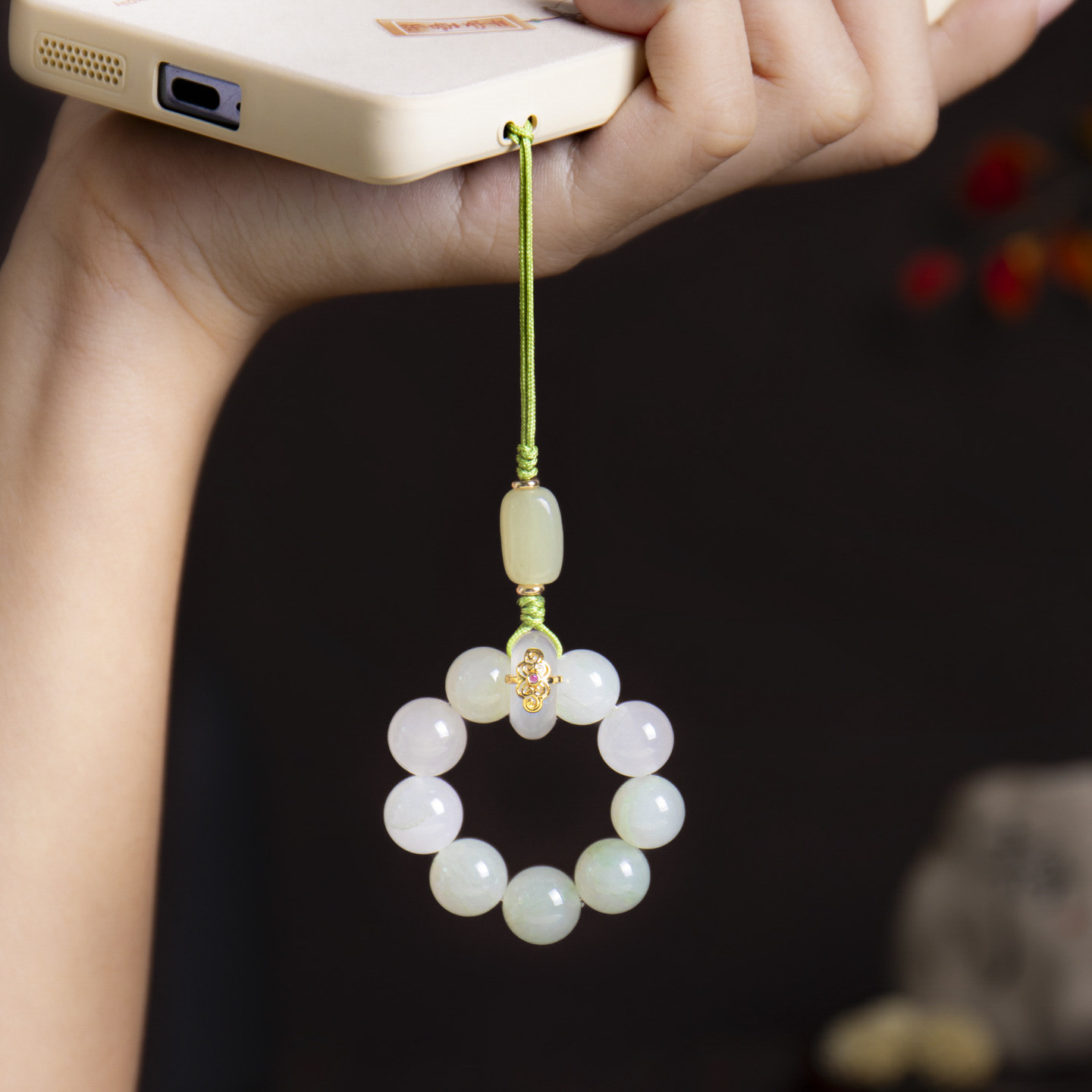 天然玉石手机链女精致古风手捻指环扣挂绳防丢挂饰包包钥匙扣挂件