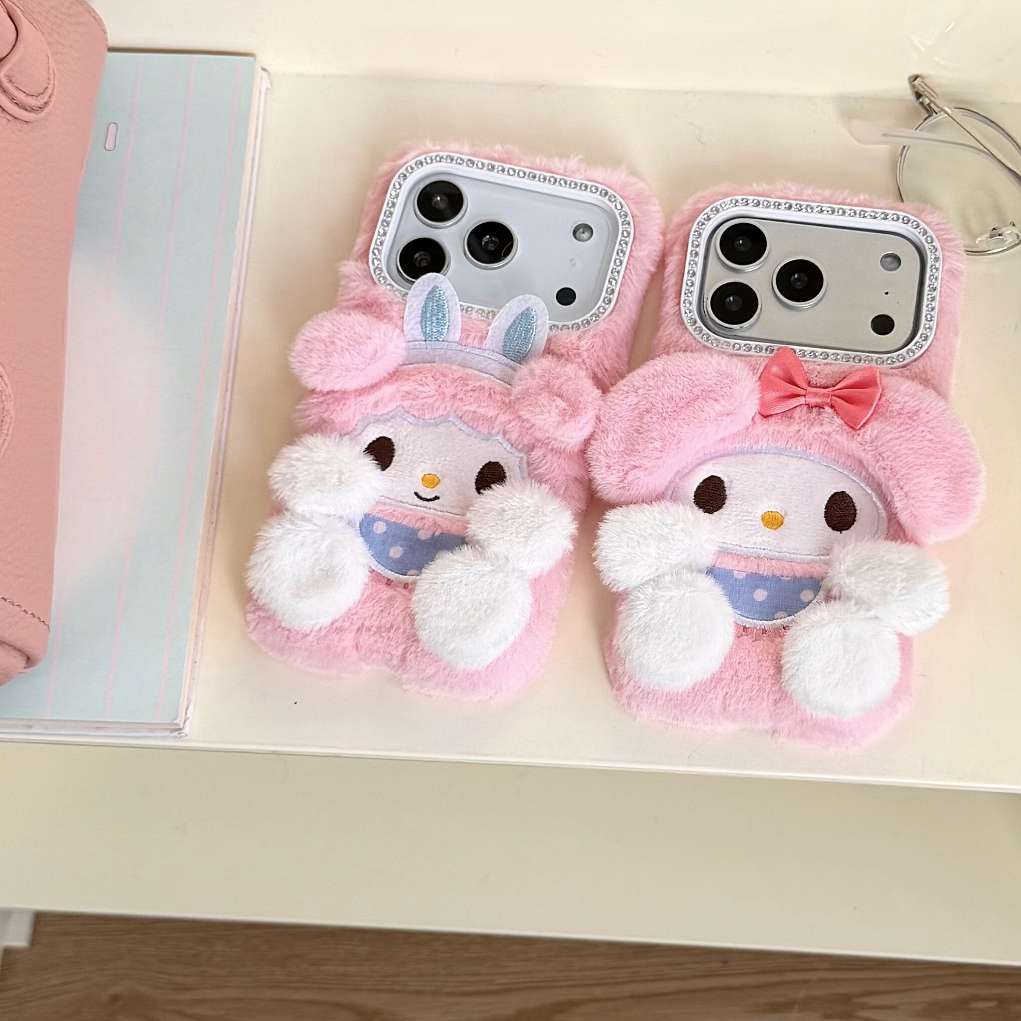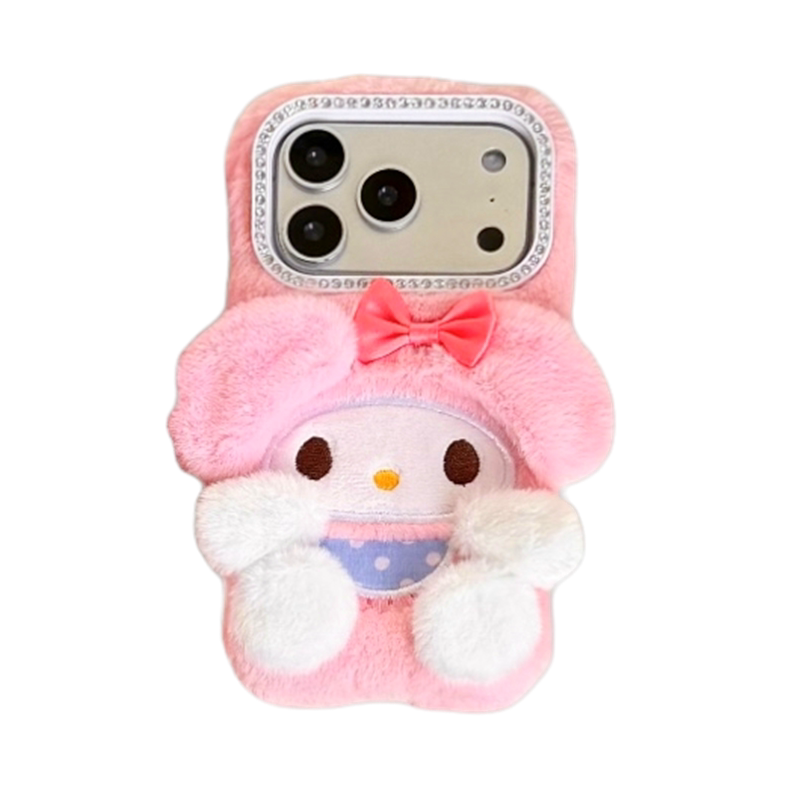 三丽鸥美乐蒂毛绒耳朵适用iPhone17ProMax手机壳卡通兔毛绒立体公仔15苹果16pro保护套i17软壳全包网红时尚13
