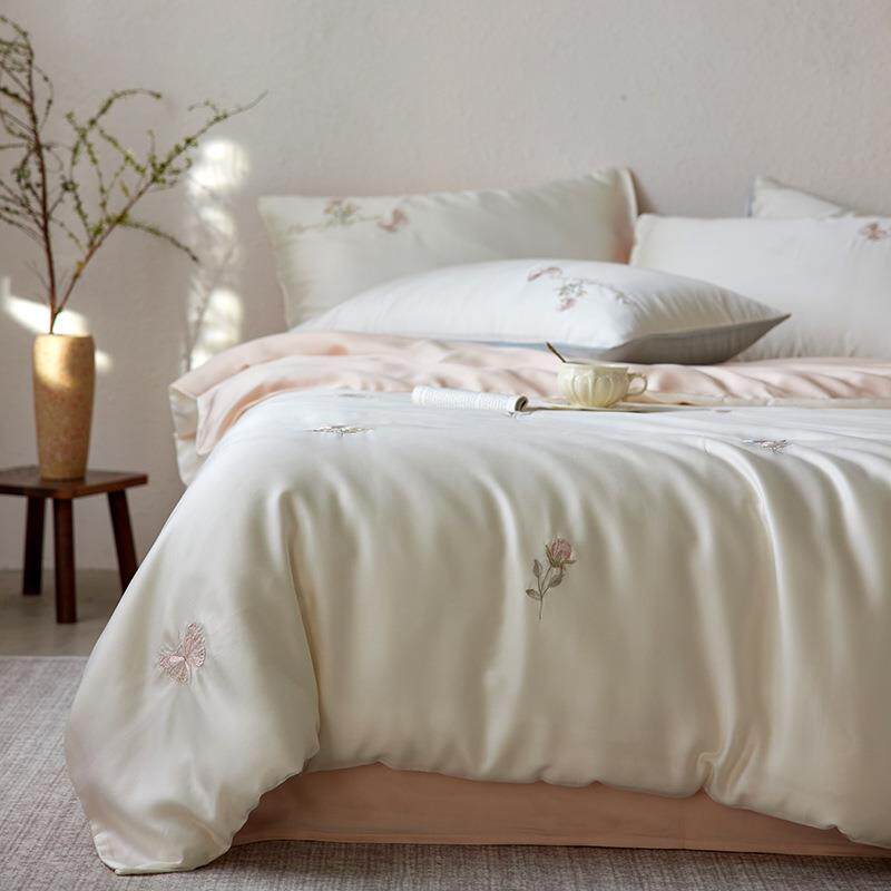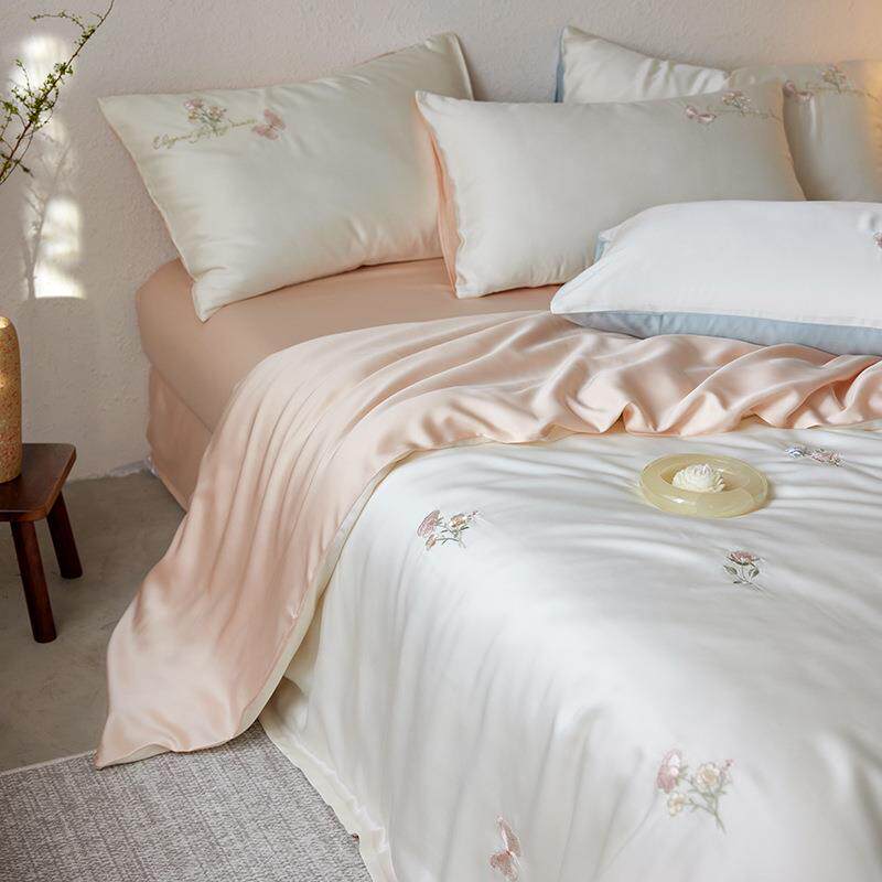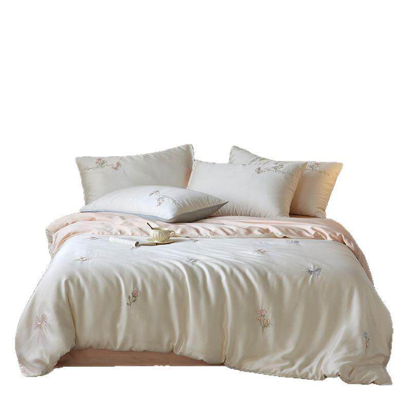 夏季凉感a类60s兰精天丝四件套小清新刺绣丝滑裸睡母婴级套件床品
