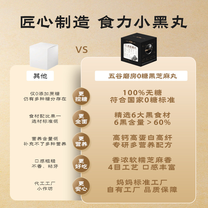 五谷磨房黑之养无糖黑芝麻丸盒手工糕点即食黑芝麻0糖零食