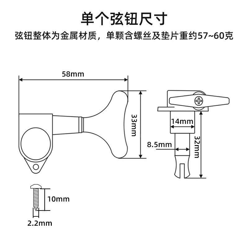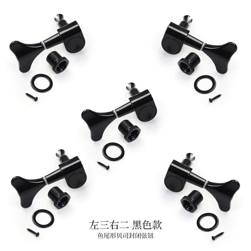 朗汀五弦电贝司封闭弦钮5颗装黑色银色贝斯鱼尾弦准全金属卷弦器