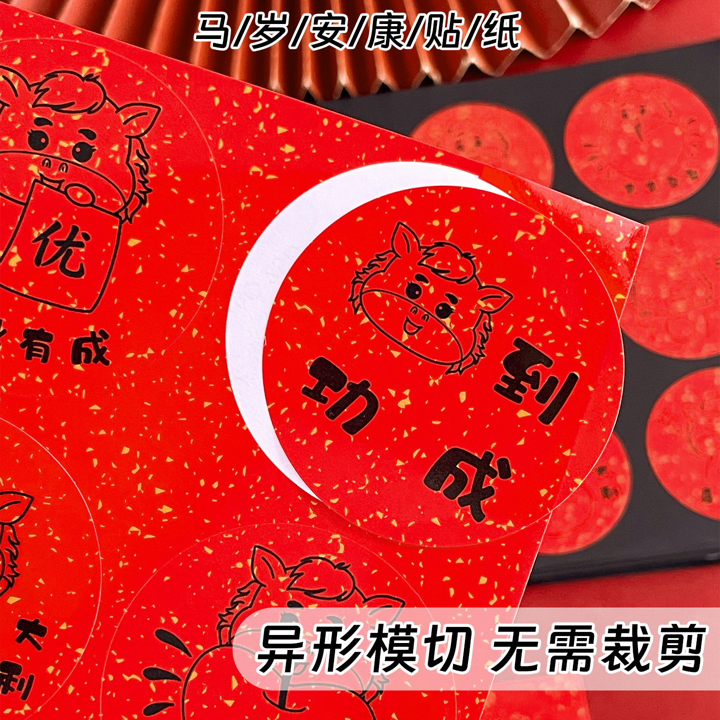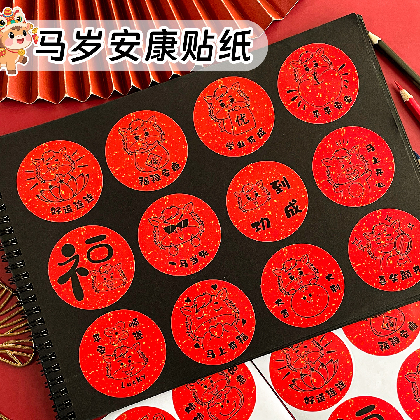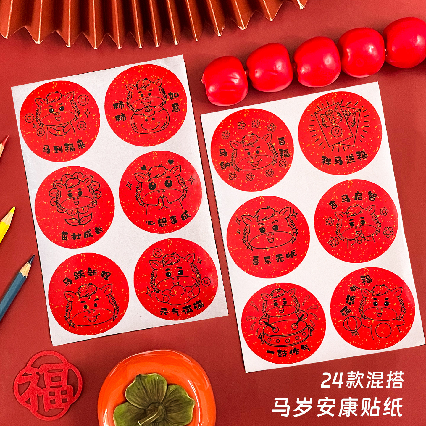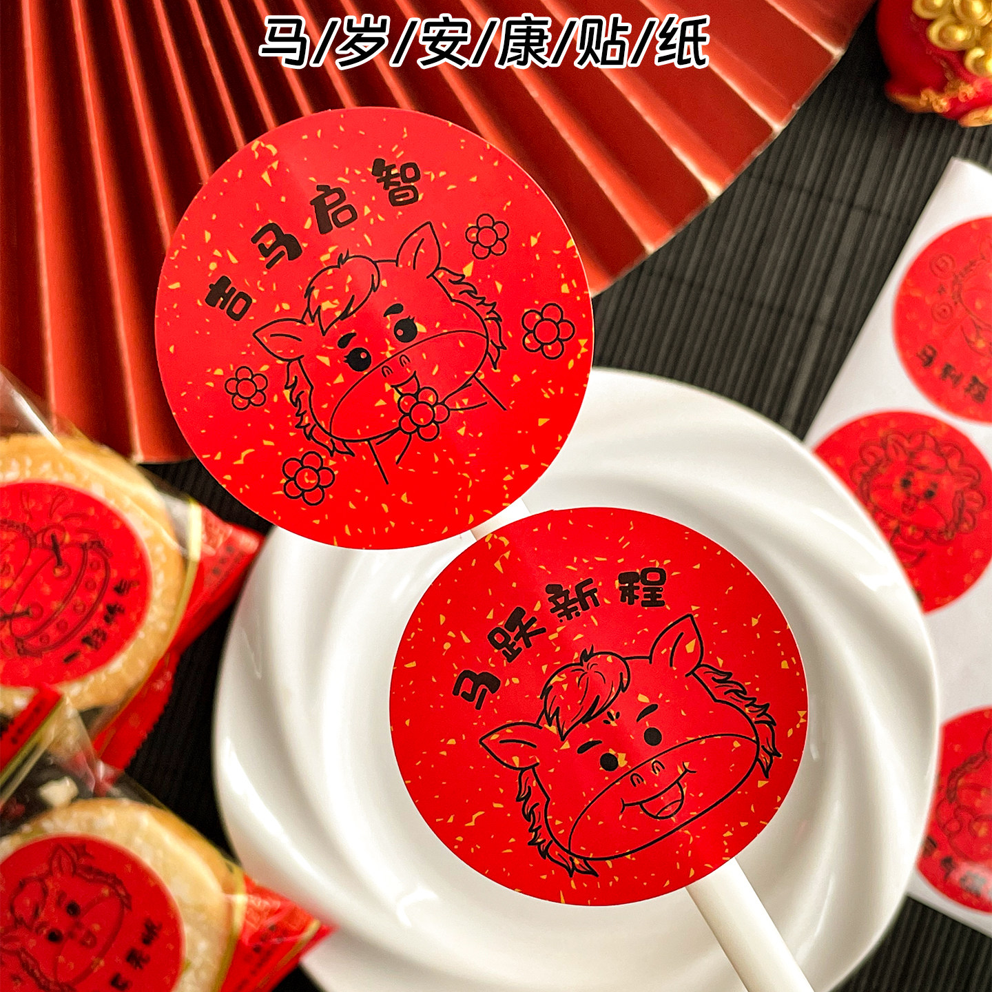 马年祝福红色喜庆圆形不干胶贴纸幼儿园旺旺雪饼开学新年学期奖励小礼物礼品袋装饰贴画跨年氛围仪式感标签贴