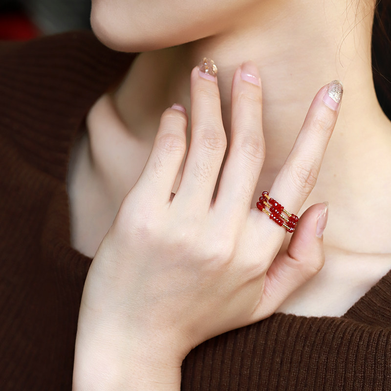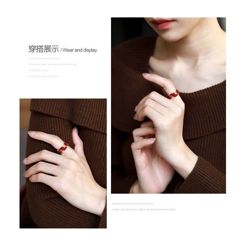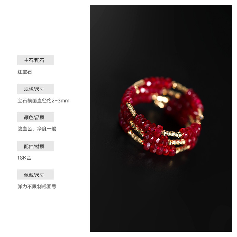 若华珠宝花火=红宝石戒指女18K金彩金指环鸽血红多层尾戒礼物定制