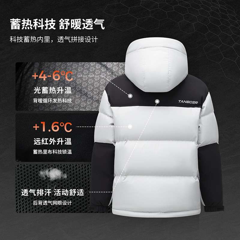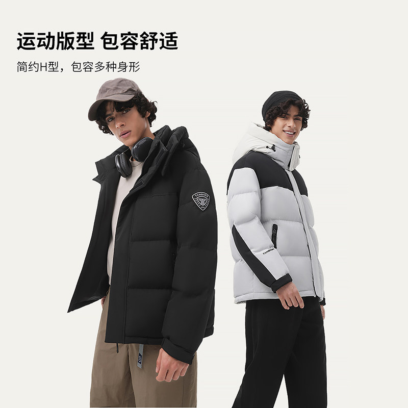 坦博尔冬季新款羽绒服男面包服可脱卸帽拼接潮流加厚运动防风外套