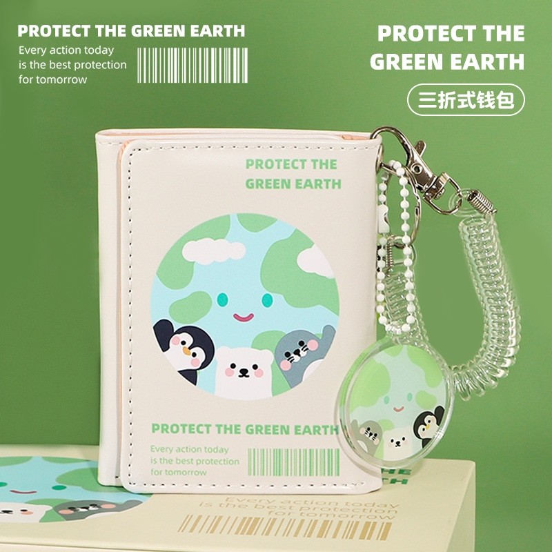 2025新款女士零钱包折叠学生可爱原创小三折女环保地球短款小钱包