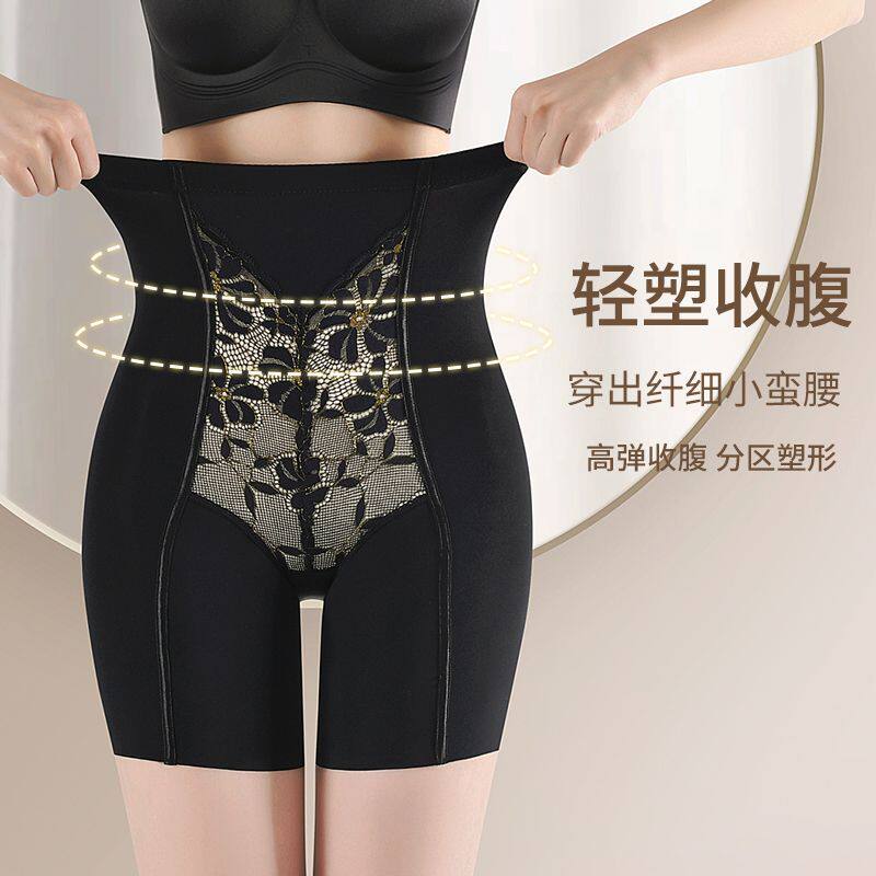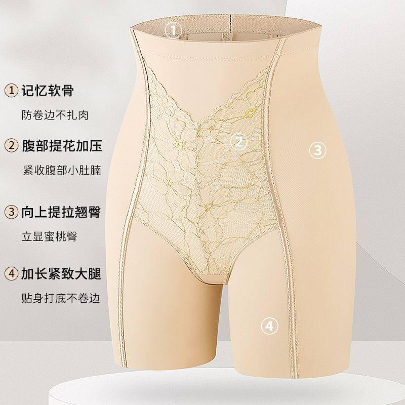 金丝高腰提花鱼骨加压收腹裤女提臀束腰安全裤加长平角塑形不卷边