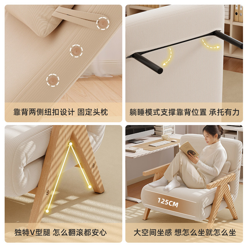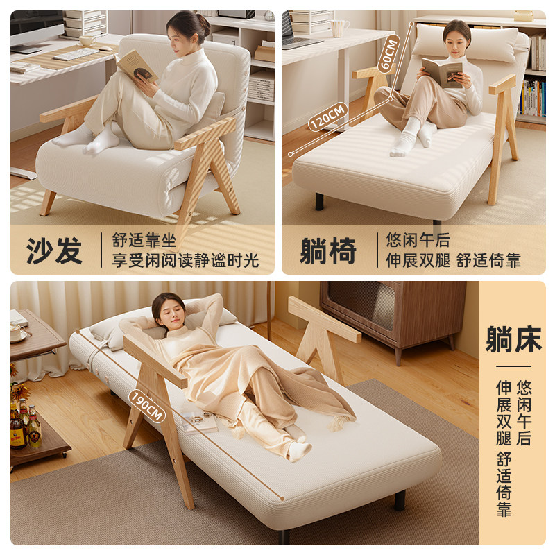 司朴沙发床两用小户型沙发可变床实木单人折叠床客厅多功能单人床