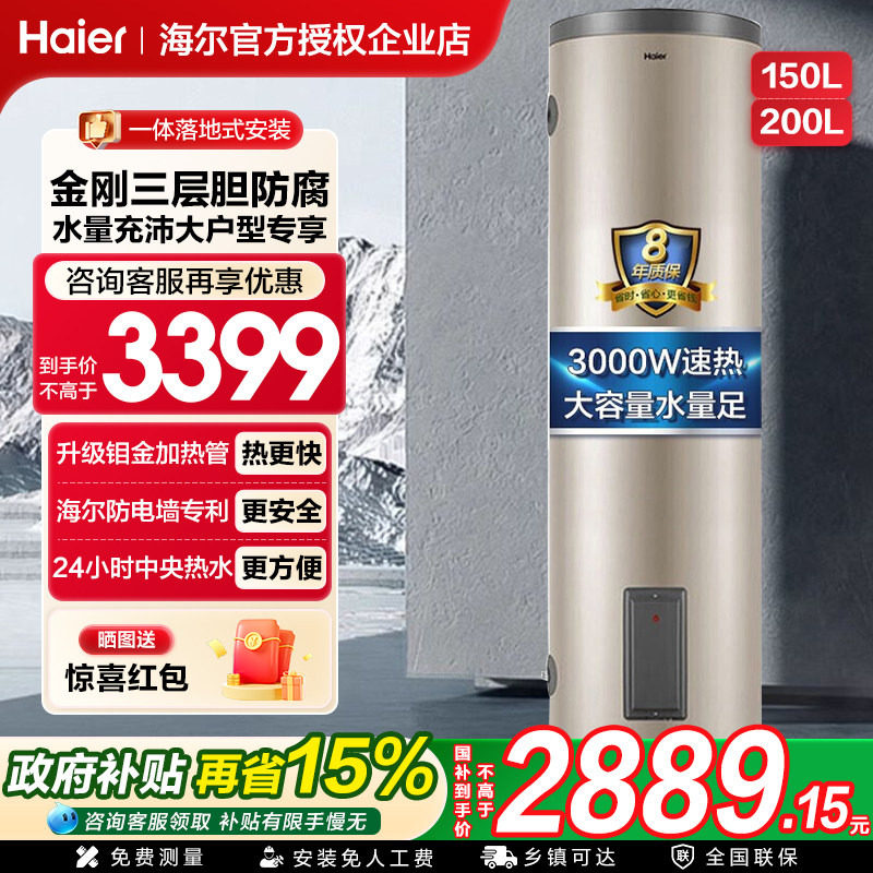 Z海尔电热水器落地式200升150L竖立式商用理发店大容量储水式家用