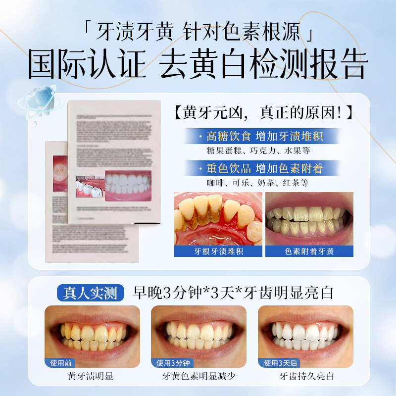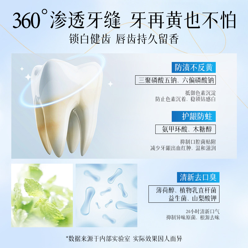 小苏打美白牙膏益生菌酵素去黄口臭成人速效洗白锁白防蛀清新口气