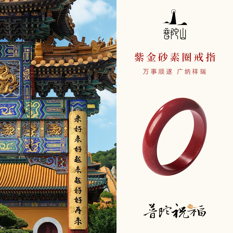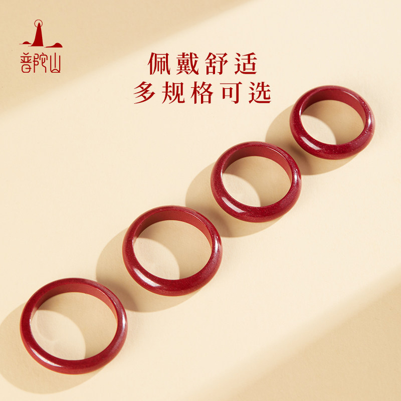 普陀山天然朱砂戒指女款官方旗舰店高含量紫金砂素圈佩戴女士指环