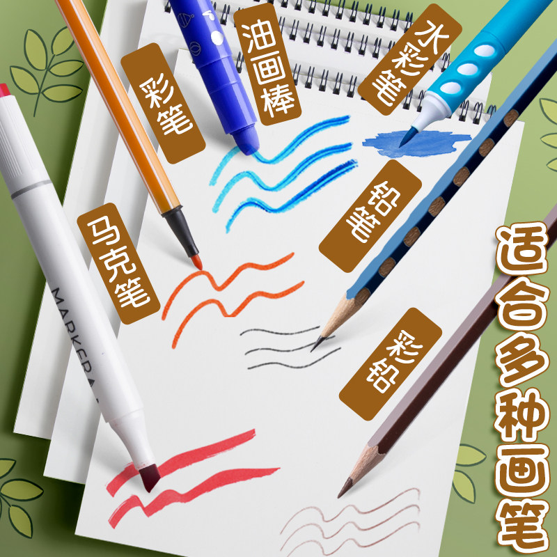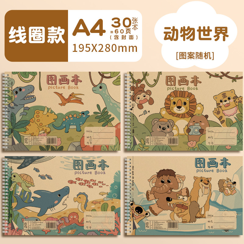 新款A4加厚动物世界线圈图画本绘画本儿童幼儿园小学生专用一年级二年级美术本空白画册手绘涂色本不透色