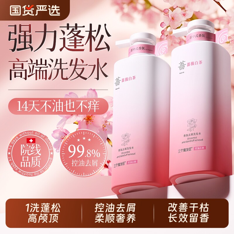 蔷薇白茶洗发水控油蓬松高颅顶去屑洗头膏露男女官方旗舰店正品
