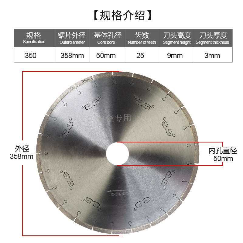 直径350/400mm鱼钩纹陶瓷锯片 厂家直销包邮微晶石黑金沙锯片降噪