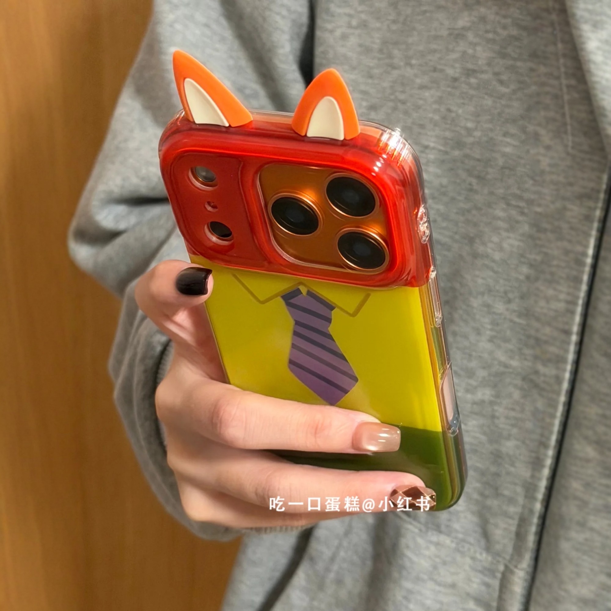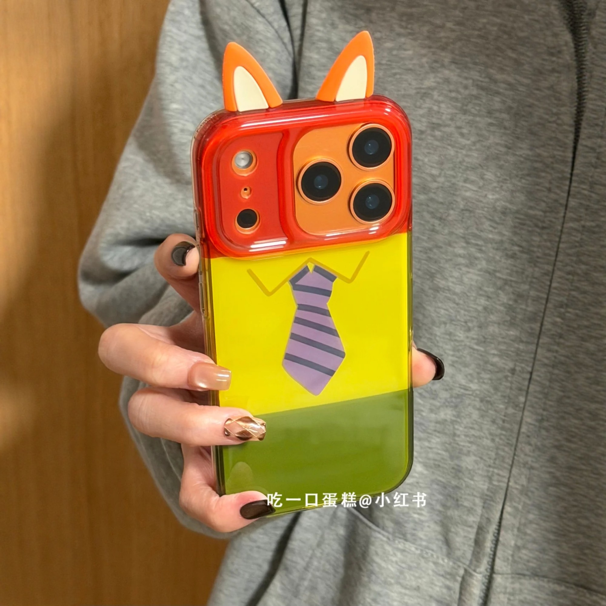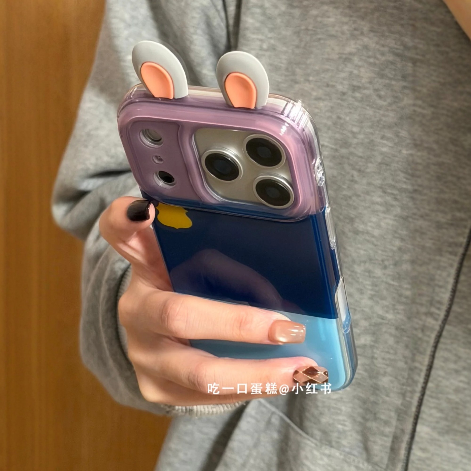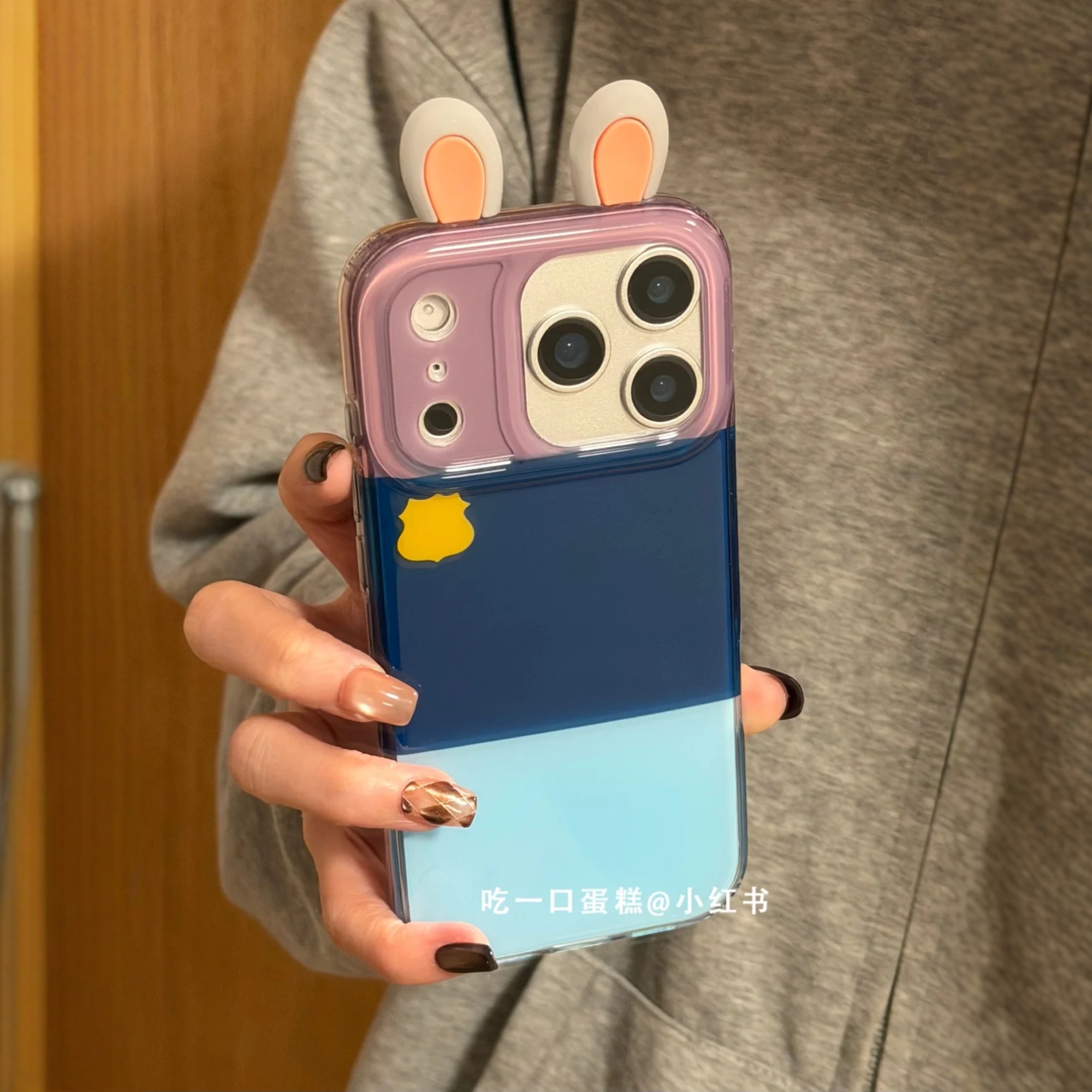 日韩ins拼色女警兔子领带立体耳朵适用iPhone17promax手机壳苹果15pro新款16可爱13女14卡通15情侣防摔保护套