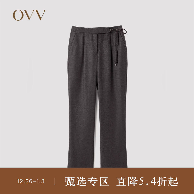 OVV秋冬女装意大利进口羊毛面料时尚系带简约套装西裤