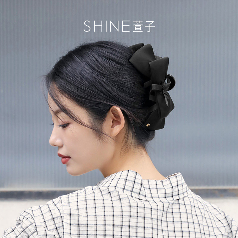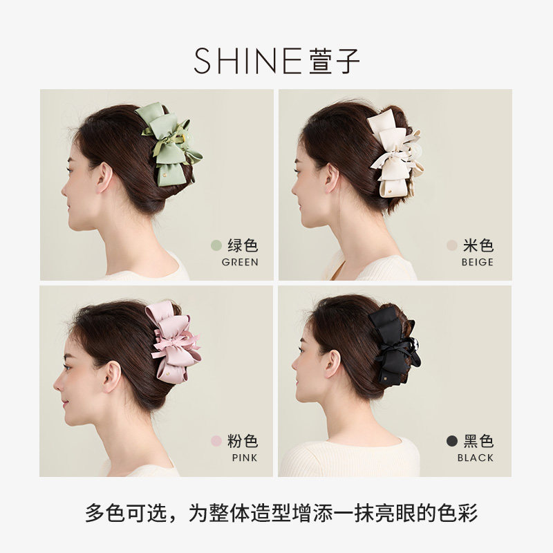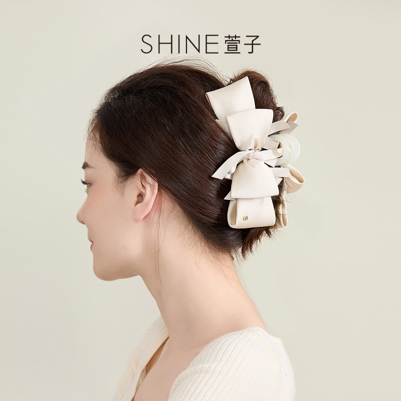 SHINE萱子饰品优雅缎面蝴蝶结抓夹丝带亚克力发夹头饰生日礼物