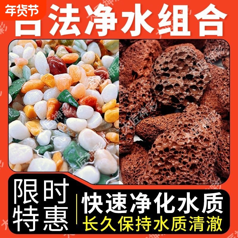 天然不浑水雨花石火山石鱼缸底砂净水造景套餐大匠神彩水培铺面石