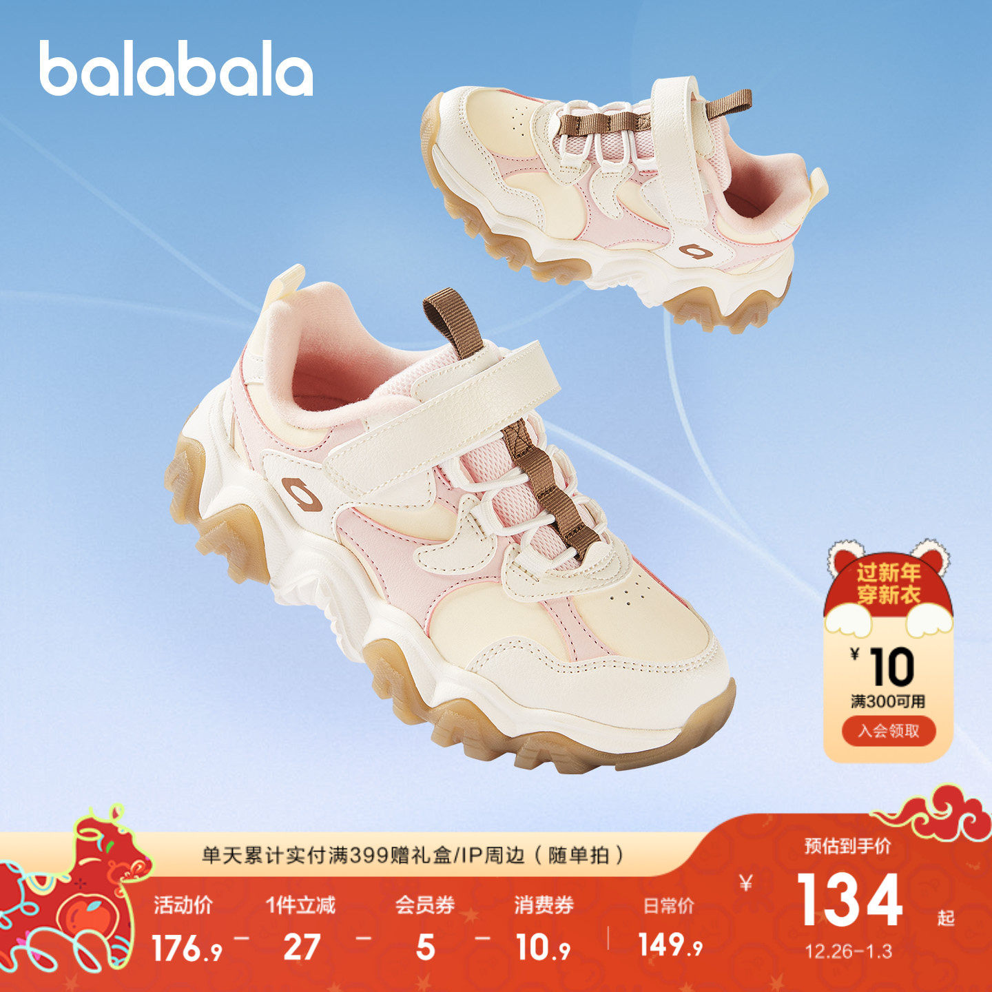 巴拉巴拉童鞋儿童运动鞋女童鞋2026新秋冬鞋子厚底撞色红色老爹鞋