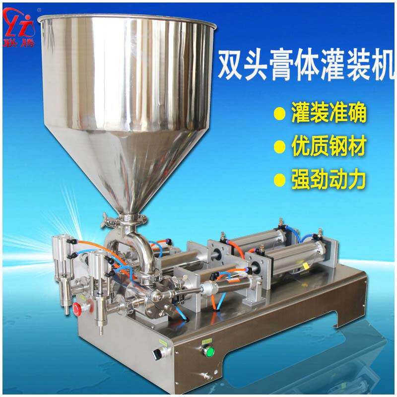 供应双头500毫升牙膏酱料花生酱灌装机膏体气动快速灌装机